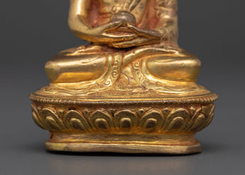 Discover the tranquil elegance of our Handmade Amitabha Buddha Small statue, which was carefully locally produced in Patan, Nepal. Crafted from fine copper and adorned with 24K gold, this amazing statue showcases the opulent legacy of Nepalese artistry. The statue's elaborate patterns and brilliant gold and acrylic paintings highlight Amitabha Buddha's divine beauty and spiritual significance. Amitabha Buddha is portrayed in a calm and meditative stance, embodying endless light and compassion.