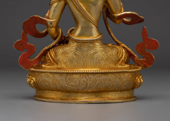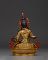 This Buddhist Deity, Vajrasattva, is a symbol of purity and wisdom, representing spiritual purification and the removal of obstacles on the path to enlightenment. This handcrafted statue, measuring 8.9" (Height) x 6.7" (Base) and weighing 1.40 kg, is made of a Copper Body and adorned with gemstones and 24K gold gilding, as well as acrylic paintwork. Crafted by expert Nepalese artisans, this sacred item embodies the rich traditions of Himalayan Buddhism, making it an essential addition to altars, meditation areas, or holy collections.