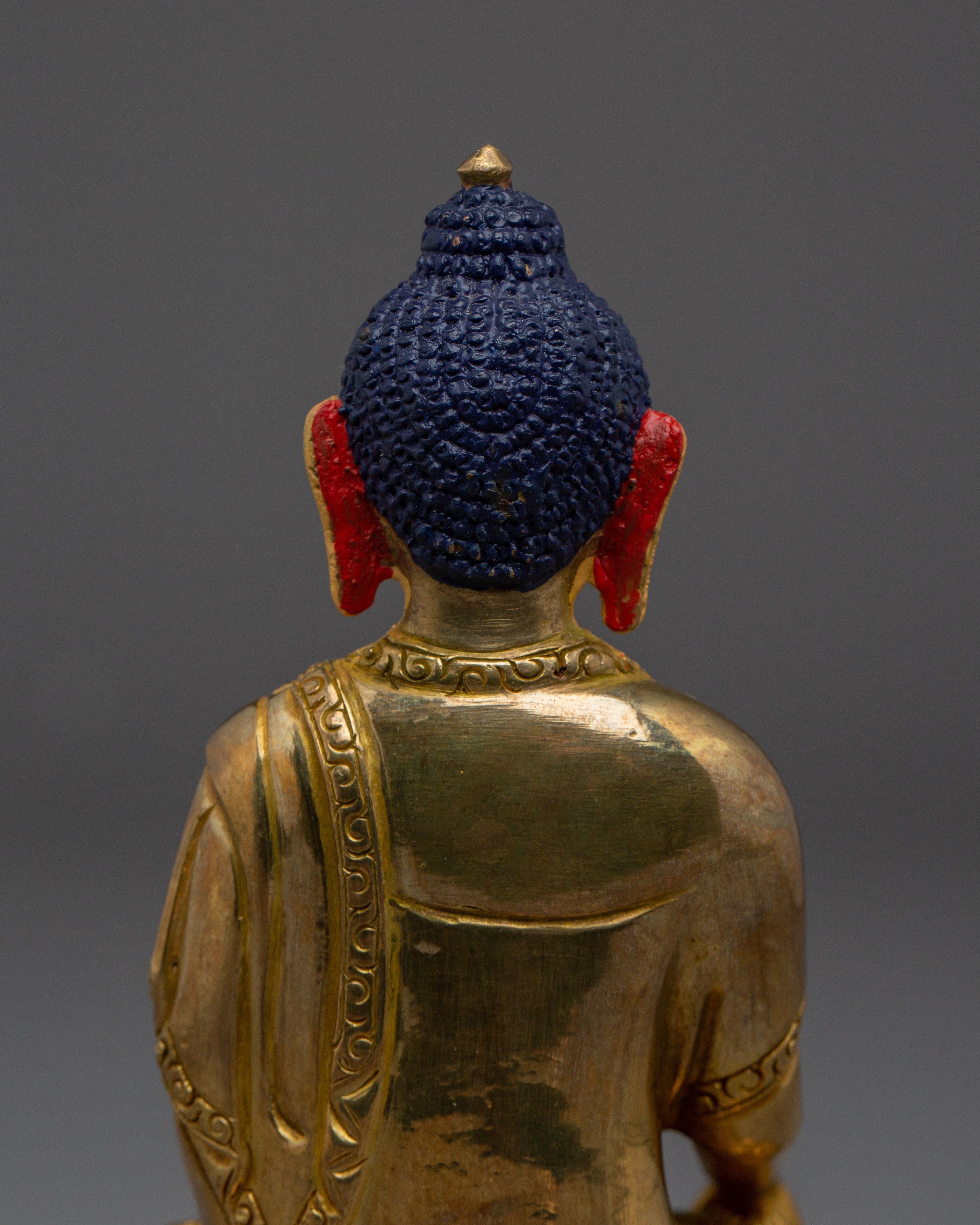 This Himalayan Handmade Gautama Buddha Artwork stands at 5.9”/15cm in height and 3.9”/10cm at the base, with a weight of 0.65 kg. Crafted from 24K gold gilded copper and enriched with gold and acrylic paintings, this compact yet detailed statue reflects the serene presence of Gautama Buddha. Skillfully handcrafted by Nepali artisans, it is ideal for small altars, personal meditation spaces, or as a meaningful spiritual keepsake.