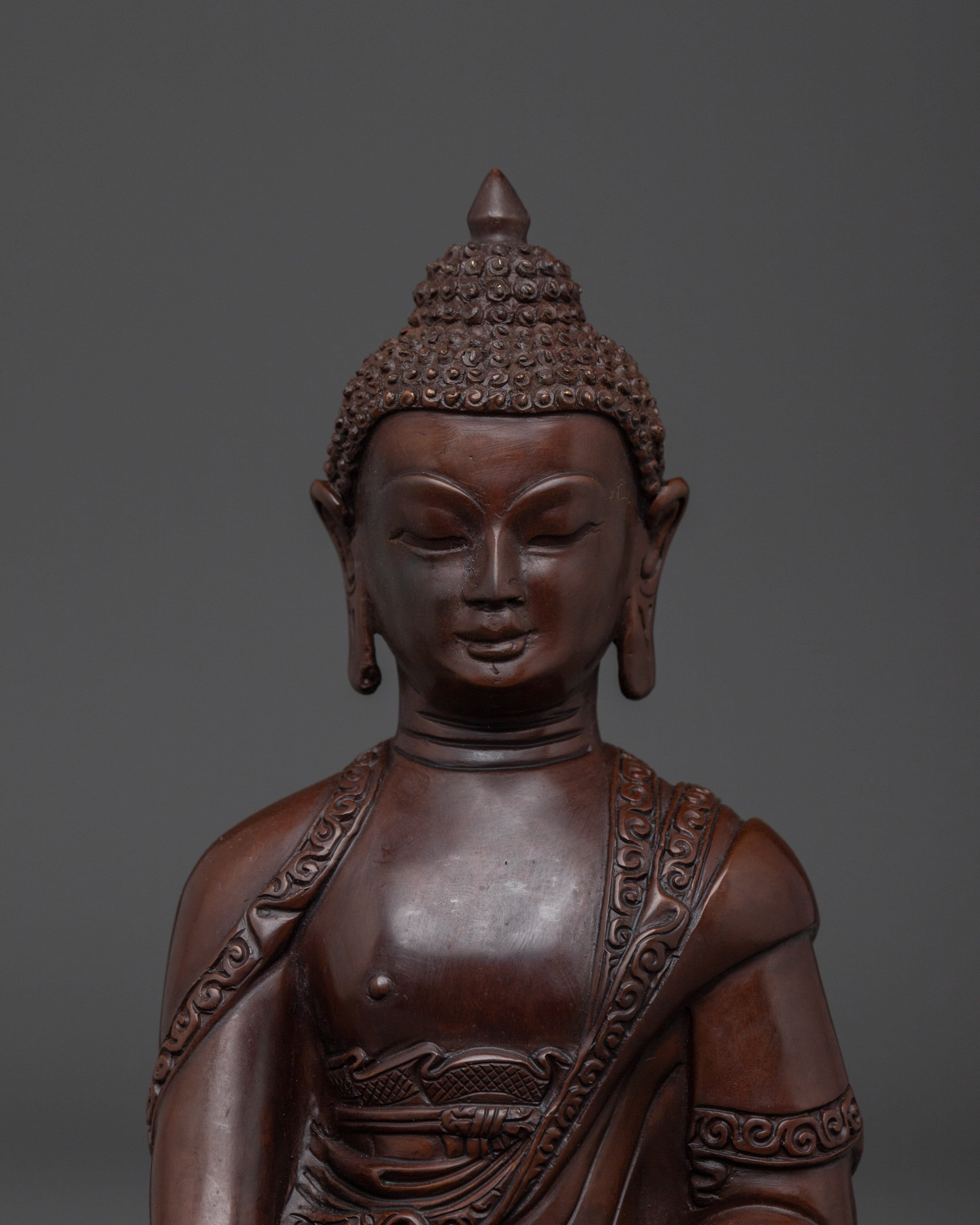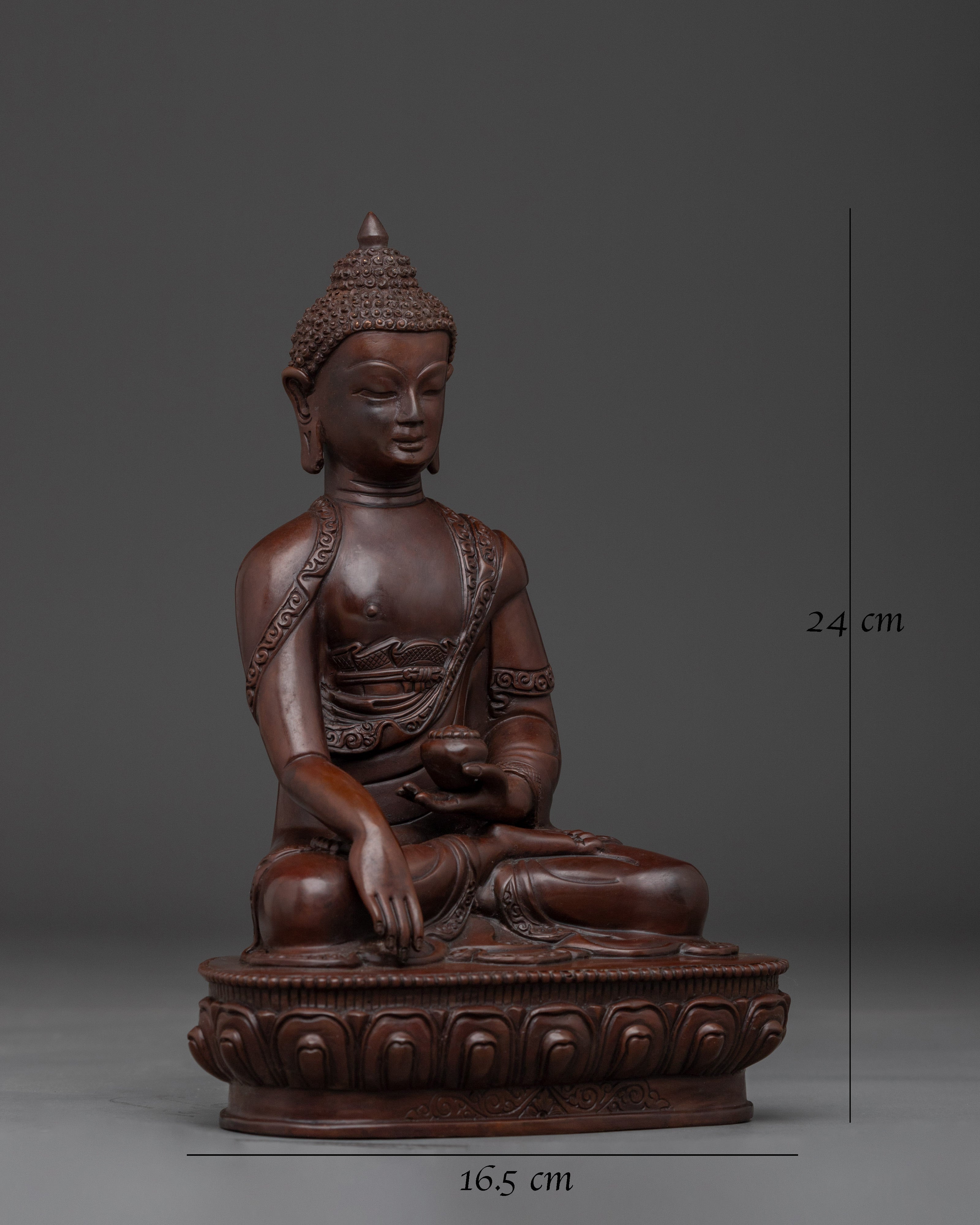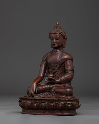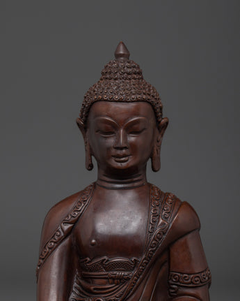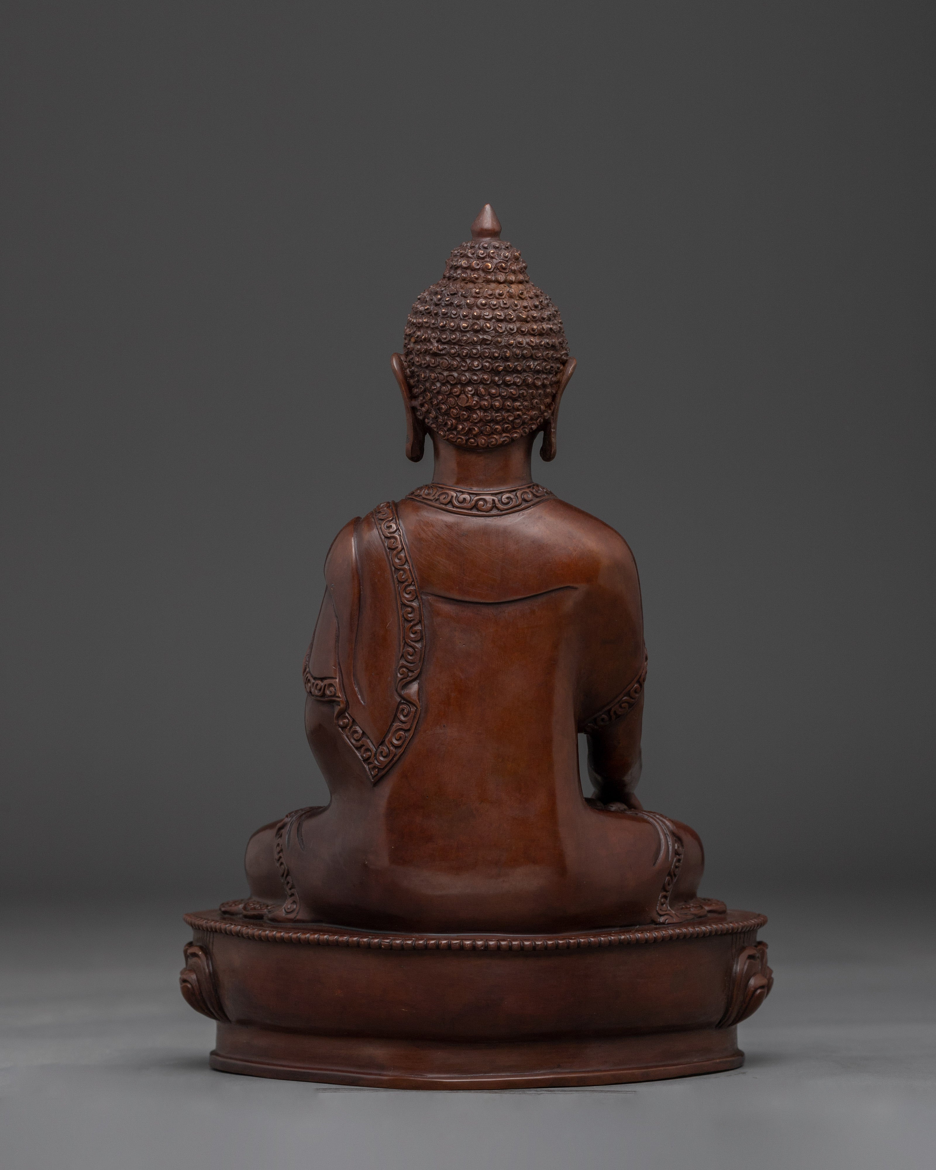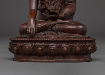 The Handmade Serene Gautama Buddha Figurine symbolizes the Buddha's deep teachings and the path to spiritual awakening. This handcrafted statue is 9.4" (Height) x 6.5" (Base) and weighs 1.96 kg. It is made of oxidized copper. This sacred statue, created by expert Nepalese artisans, represents the craftsmanship of Himalayan Buddhism, making it an inspirational addition to altars, meditation places, or sacred collections.