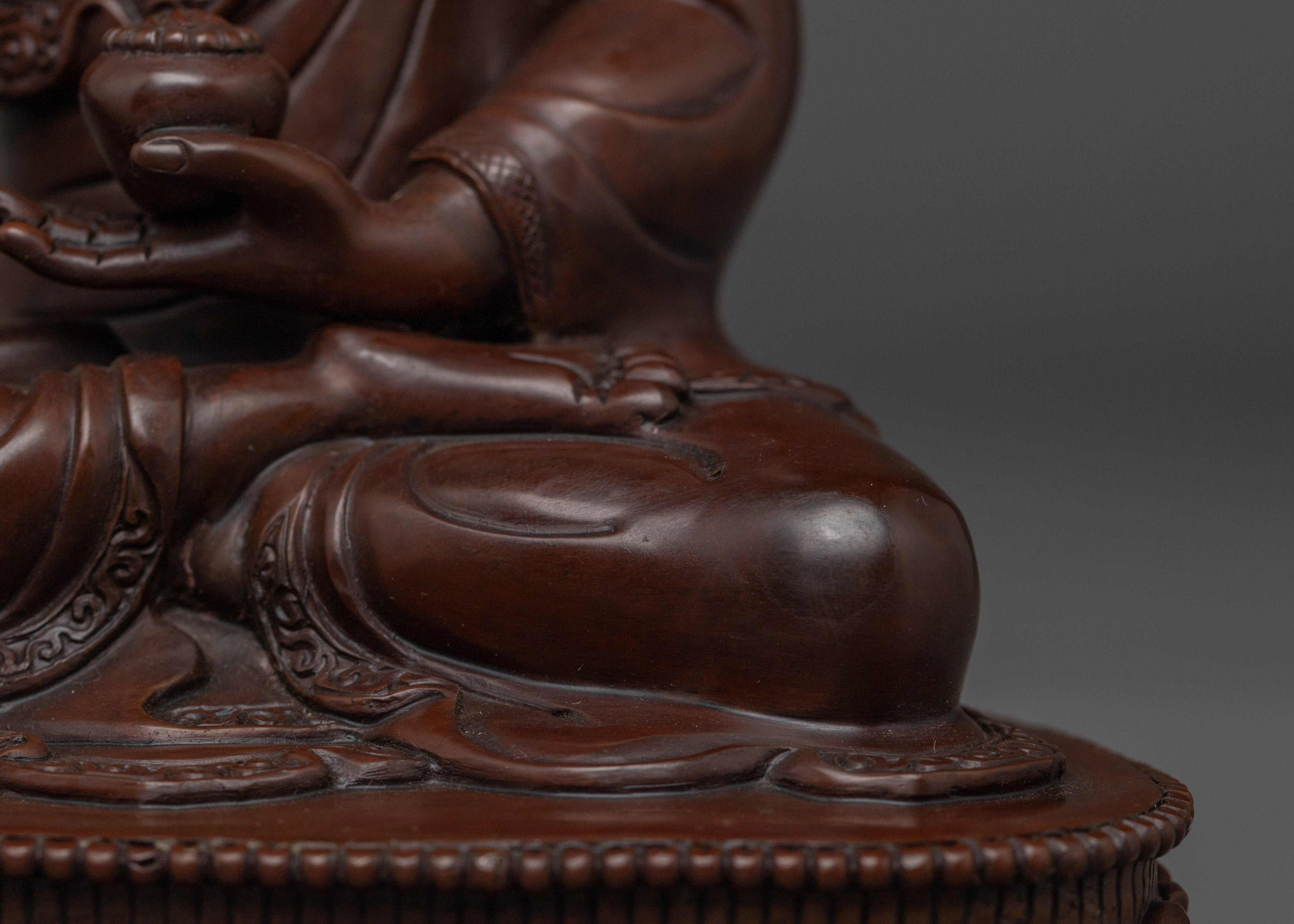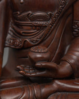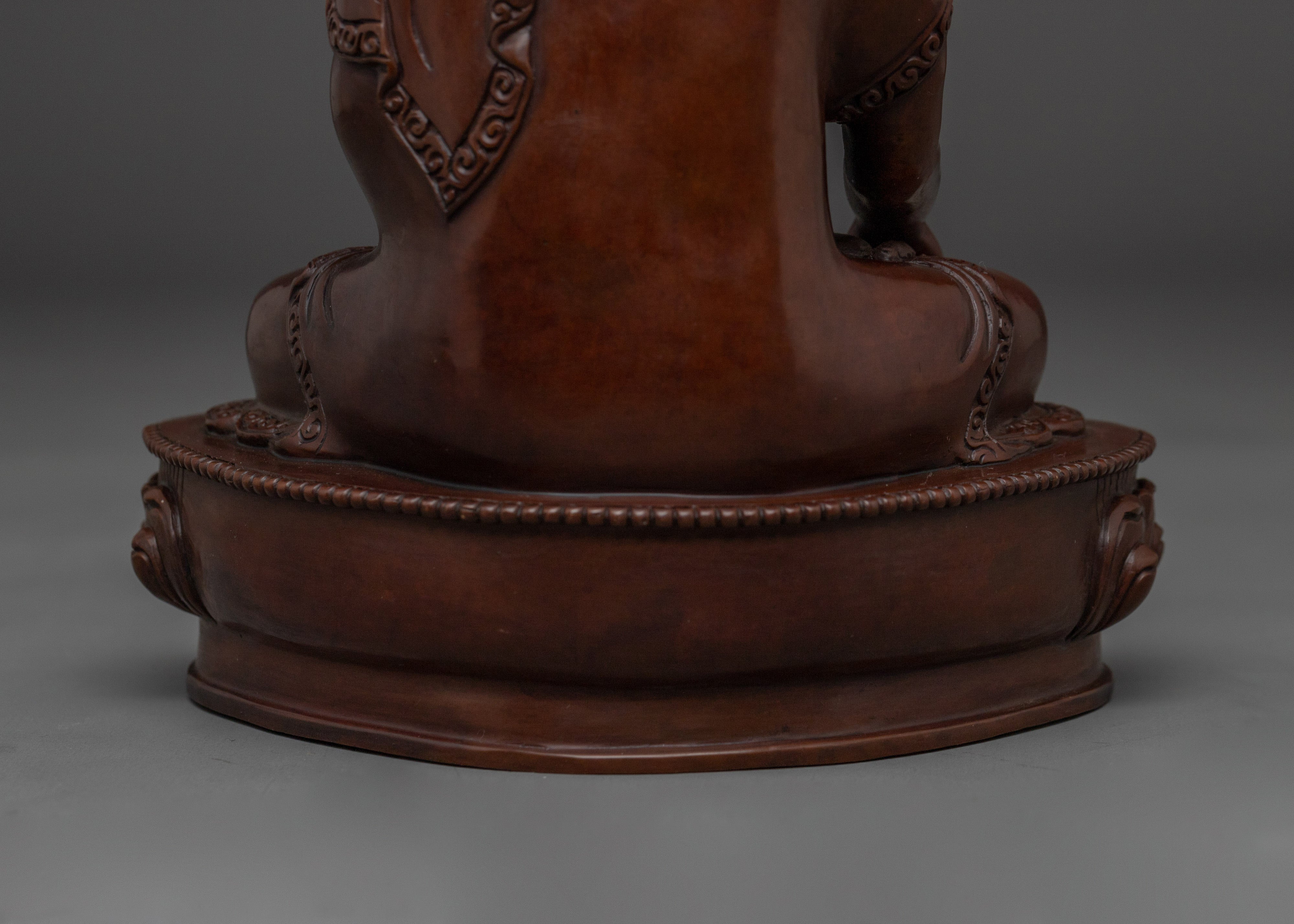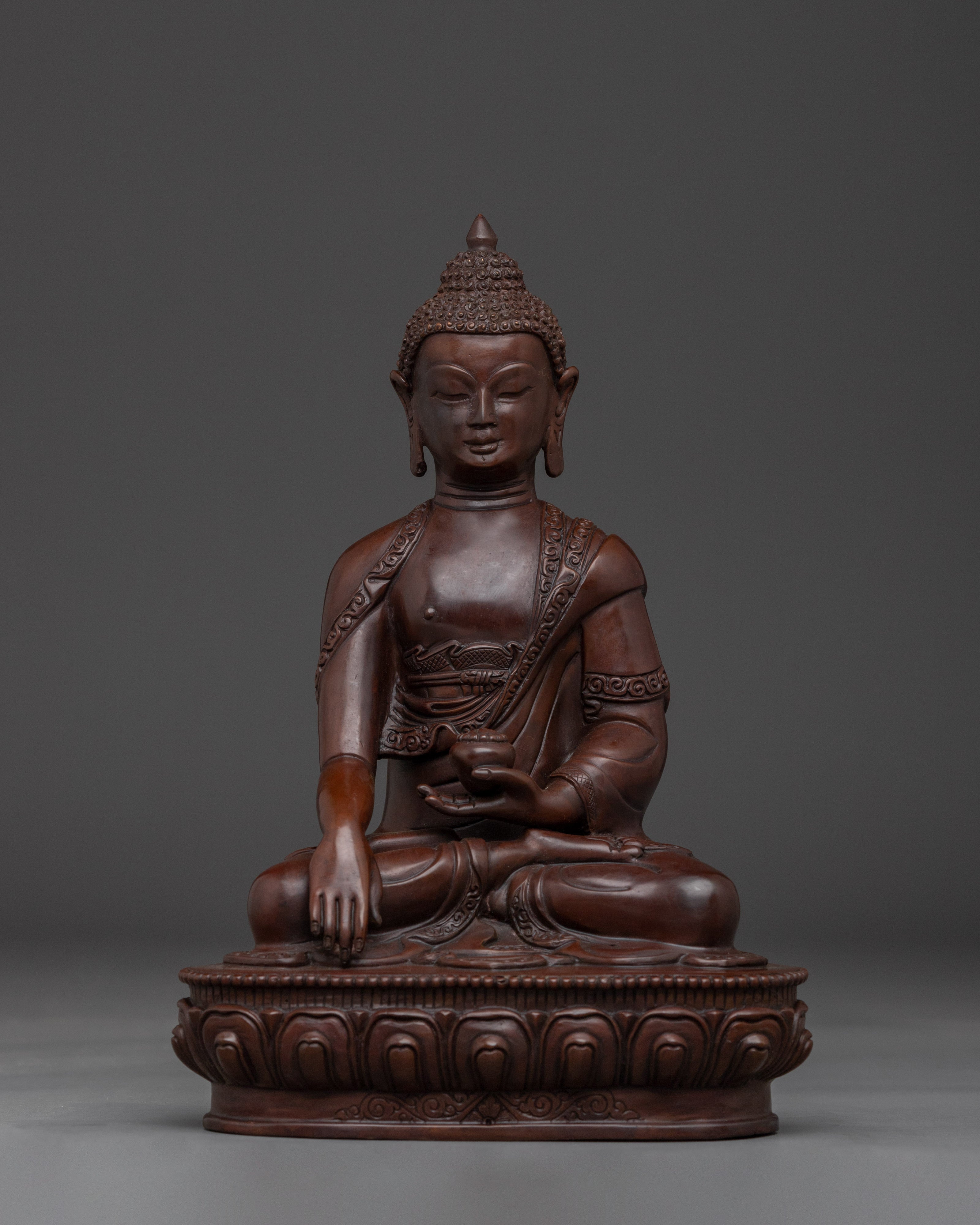The Handmade Serene Gautama Buddha Figurine symbolizes the Buddha's deep teachings and the path to spiritual awakening. This handcrafted statue is 9.4" (Height) x 6.5" (Base) and weighs 1.96 kg. It is made of oxidized copper. This sacred statue, created by expert Nepalese artisans, represents the craftsmanship of Himalayan Buddhism, making it an inspirational addition to altars, meditation places, or sacred collections.