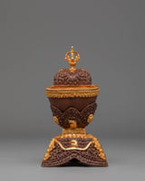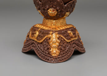 The Handmade Tibetan Kapala for Rituals is an intricately designed sacred vessel, perfect for spiritual practices and rituals. This Kapala features a copper body, delicately plated with gold, enhancing its spiritual significance. Measuring 17.5 cm in height and 10 cm in width, it is ideal for rituals where focus and intention are key. The traditional design showcases symbolic motifs representing life, death, and the cyclical nature of existence, embodying the deep spiritual connections central to Tibetan Buddhist rituals.