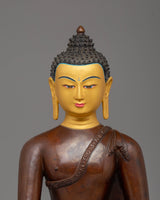 Handcrafted Tibetan Shakyamuni Buddha with Gold Plating and Acrylic Color Accents