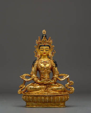 Golden Healing Deity Amitayus Artwork | 24K Gold Gilded Statue