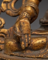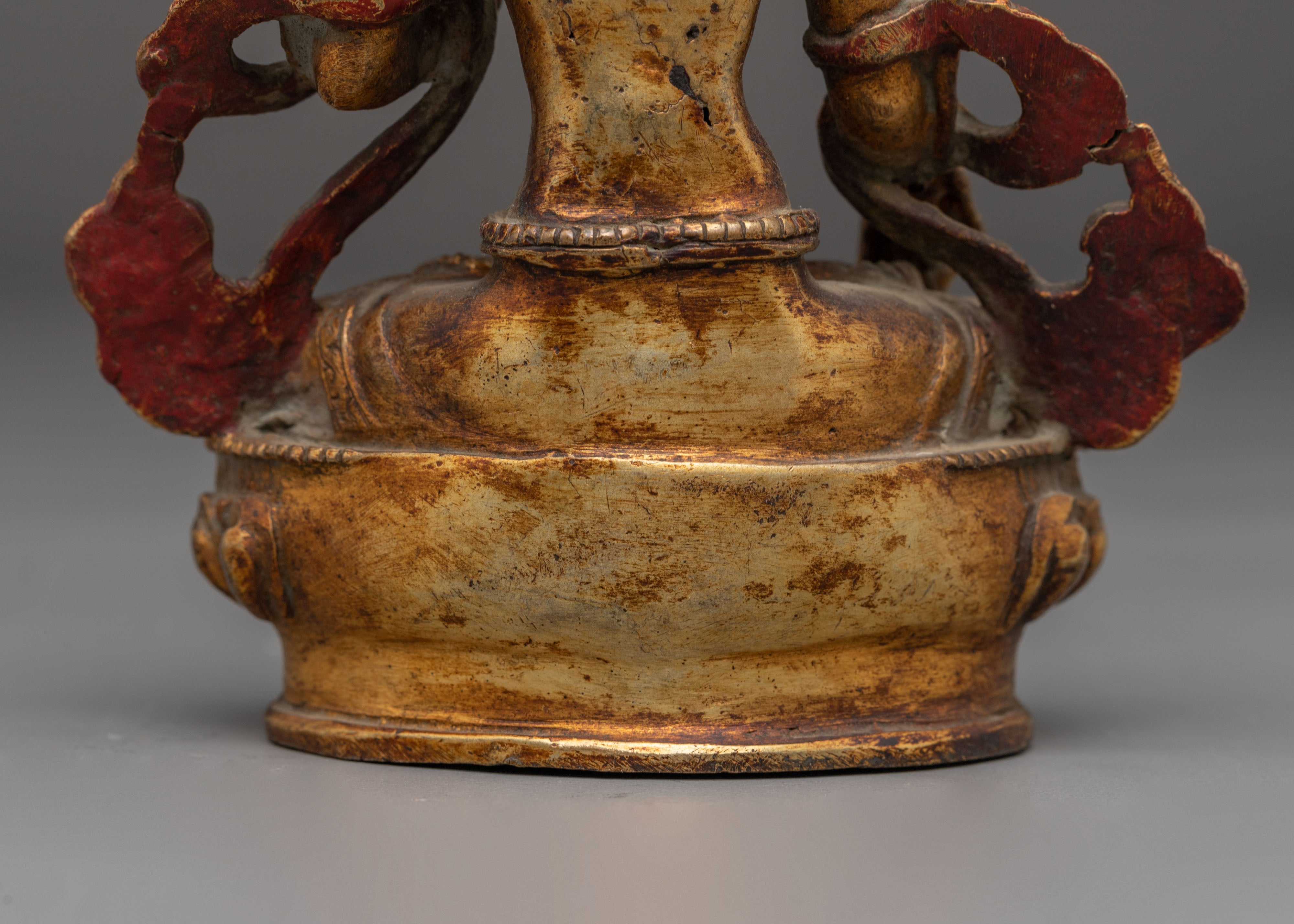 The Healing Goddess Mother White Tara Statue is a symbol of compassion, healing, and longevity, radiating divine grace and spiritual blessings. This wonderfully handcrafted statue, which measures 6.3" (Height) x 4.3" (Base) and weighs 0.53 kg, is made of copper and has a durable and spiritual appeal. Crafted by expert artisans, this item symbolizes the rich traditions of Himalayan Buddhism, making it an essential addition to altars, meditation places, or holy collections.