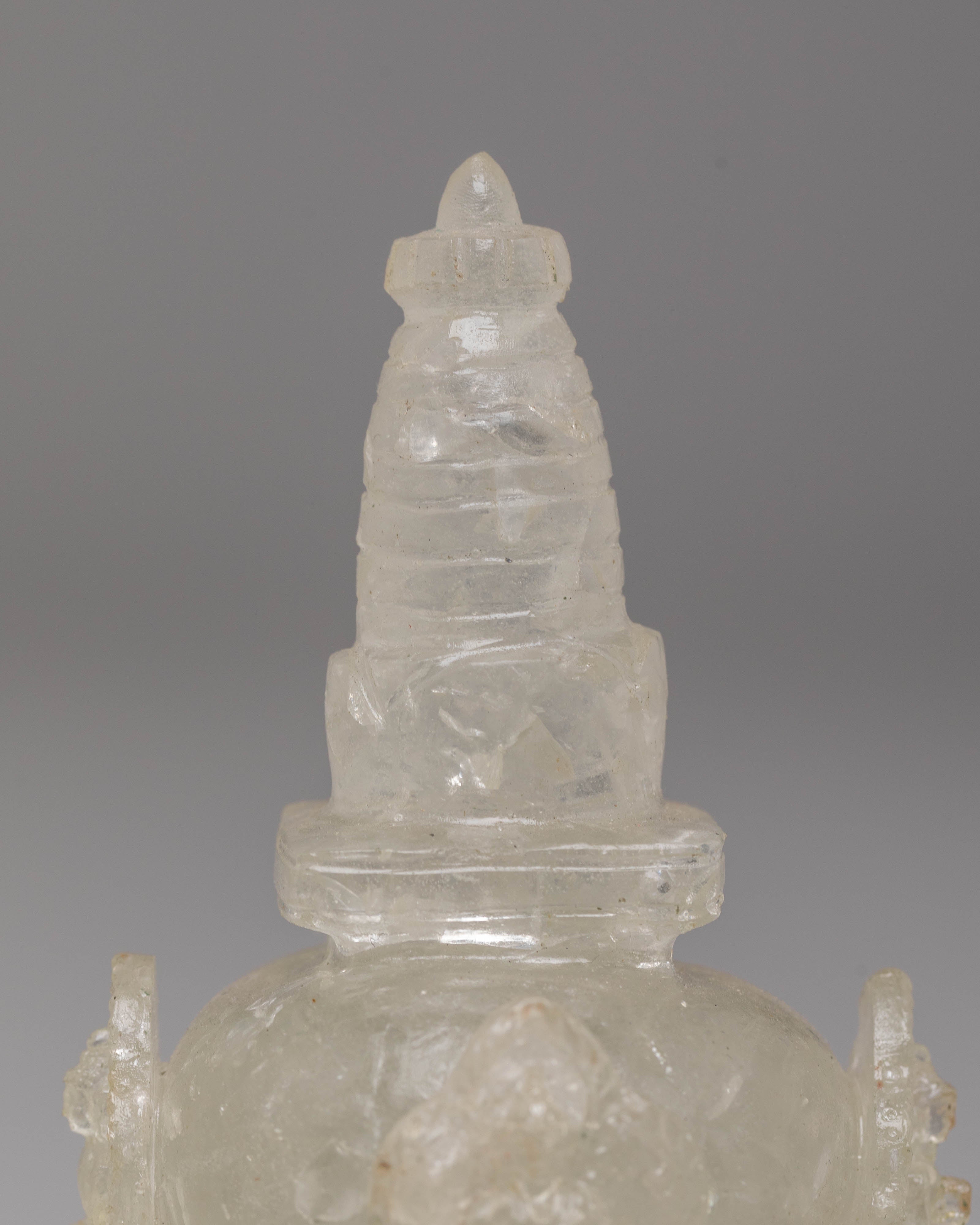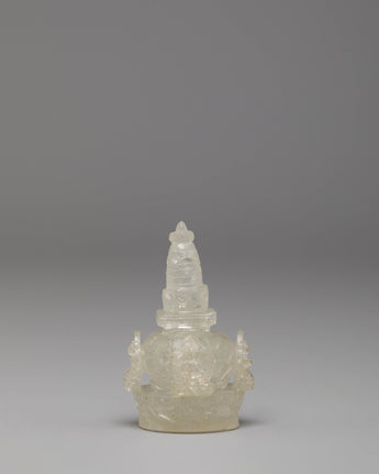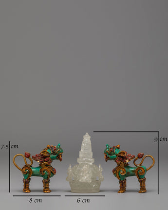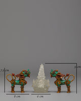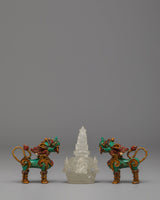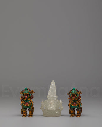 Himalayan Crystal Stupa and Guardian Lion Set | Electro Gold-Plated Tibetan Art