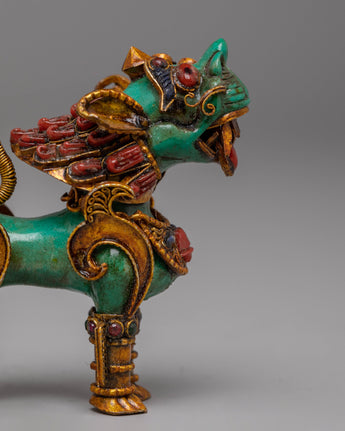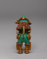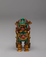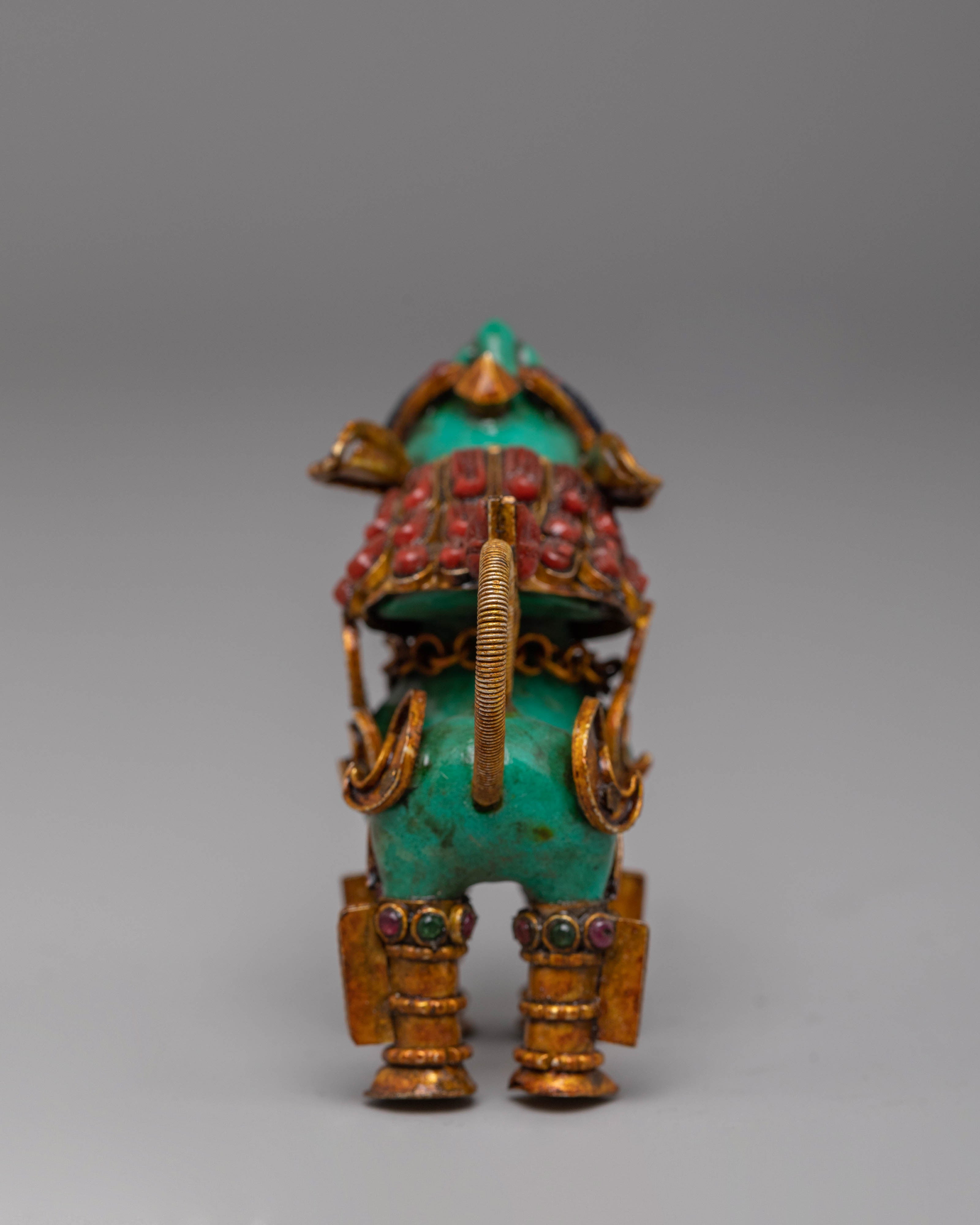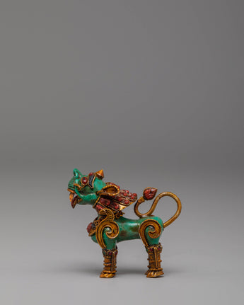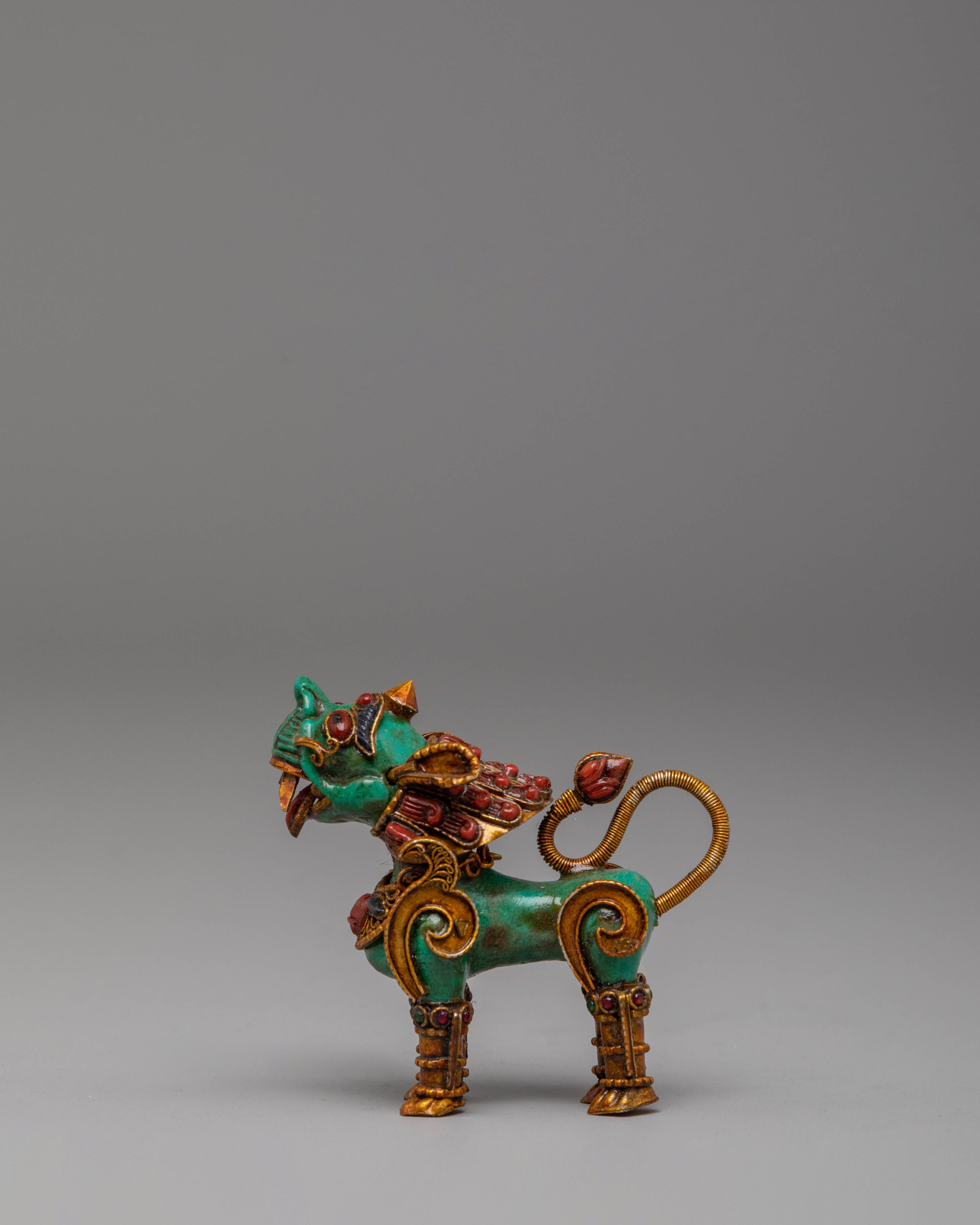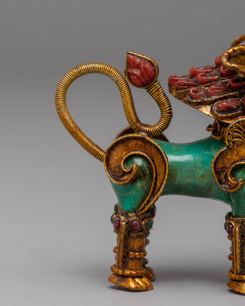 The guardian lions, each standing at 7.5 cm, are traditionally placed on either side of sacred objects or altars to protect against negative energy. The lions are meticulously crafted with a copper body and electro gold plating, ensuring both durability and beauty. The coral and turquoise accents further highlight their importance as guardians, protecting the space's energy and ensuring peace and spiritual growth.