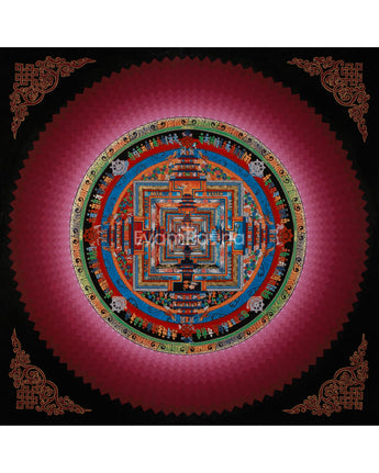 Kalachakra Mandala Thangka With Warm Halo Around | Tibetan Wall Hanging