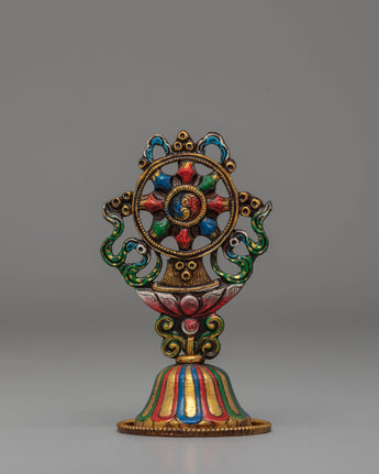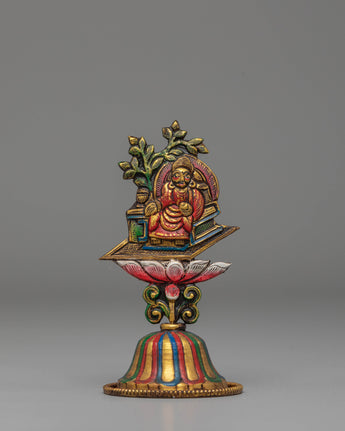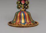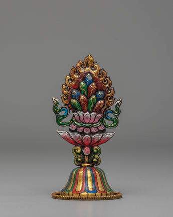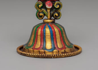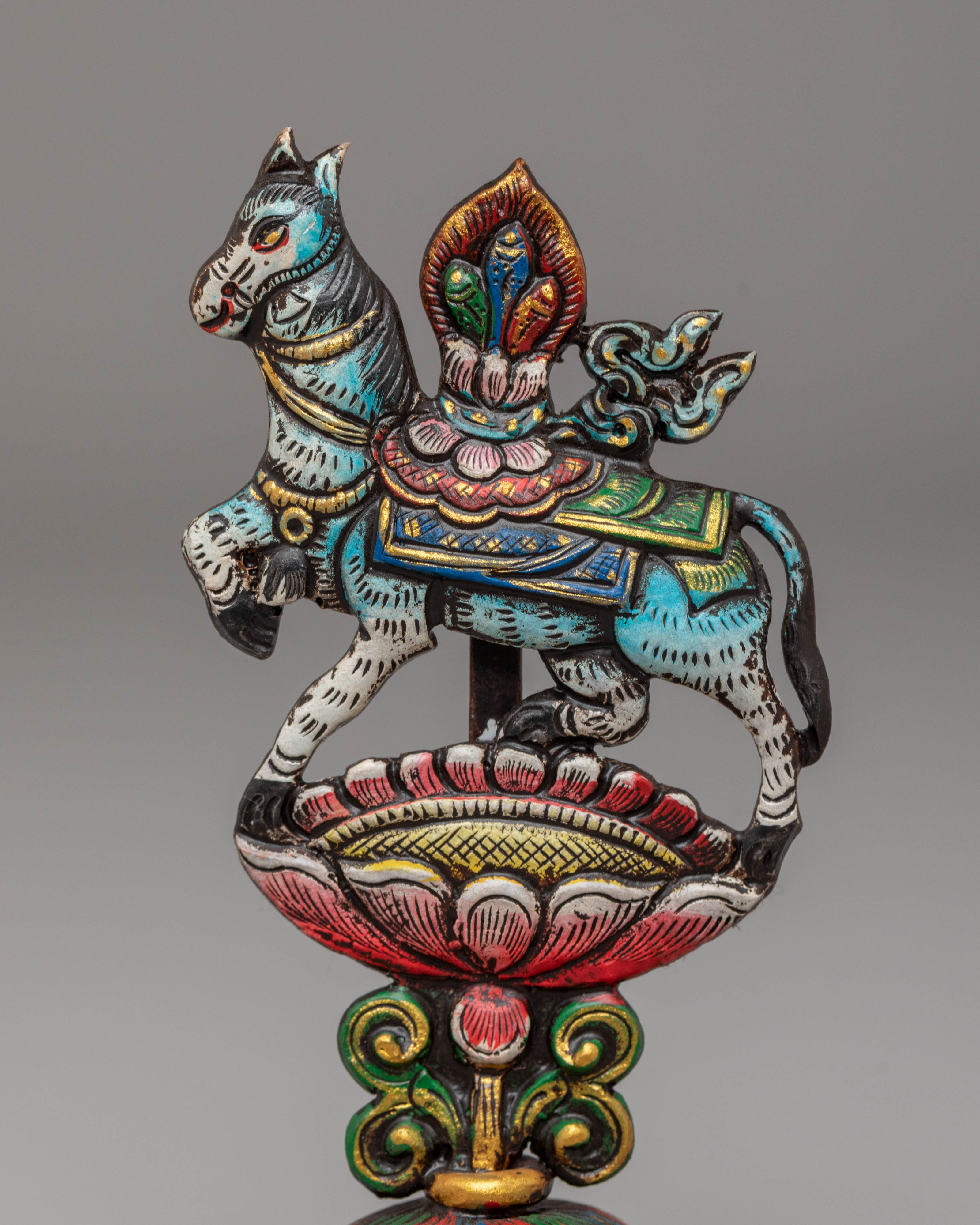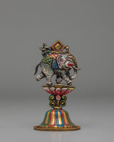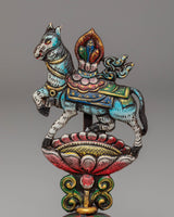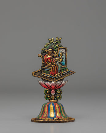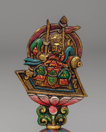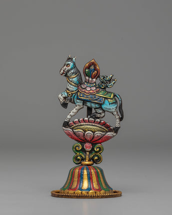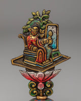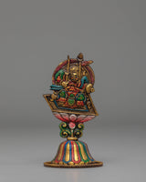 Each figurine is adorned with detailed motifs, symbolic crowns, and traditional attire, reflecting themes of prosperity, harmony, and auspicious leadership. Their bases feature multicolored designs inspired by conventional Himalayan ornamentation, adding depth and vibrancy to the overall aesthetic. The acrylic colors enhance fine details without overpowering the natural copper tones, creating a balanced and beautifully crafted finish. Whether displayed together or individually, these figurines bring a sense of cultural storytelling and artistic charm.