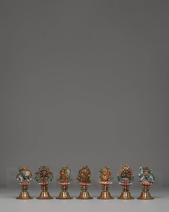 This King and Queen Set for Decor is a beautifully handcrafted figurine collection that adds charm, elegance, and culture to any space. Each figure stands 12.5cm tall and 7cm wide, with a single weight of 0.06kg and a total weight of 0.43kg, making the set lightweight yet visually impactful. Made from a copper body and hand-painted with vibrant acrylic colors, the set showcases intricate craftsmanship, making it ideal for collectors and lovers of Tibetan-inspired decor.