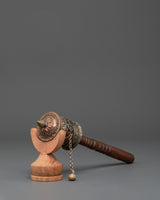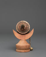This prayer wheel's beautiful craftsmanship combines natural woods with intricate metal details to create a spiritual beauty. A modest weighted chain lets the wheel spin smoothly, representing the continual flow of compassion throughout the universe. The linked wooden stand makes it perfect for altars, meditation settings, or as a decorative piece in mindful environments. Each turn of this Tibetan Mani Wheel is thought to spread positive vibrations and promote inner calm.
