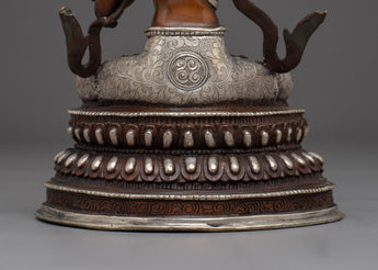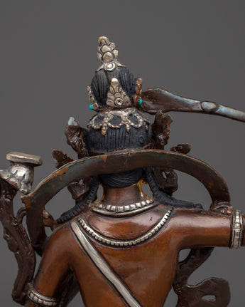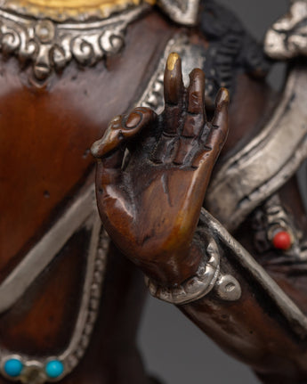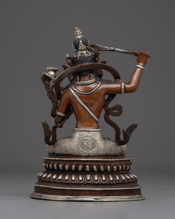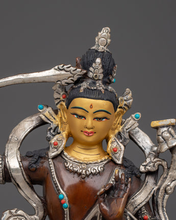 Manjushri Copper Statue with Silver & Gold | Symbol of Enlightenment, Sacred Knowledge