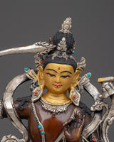Manjushri Copper Statue with Silver & Gold | Buddhist Deity of Wisdom