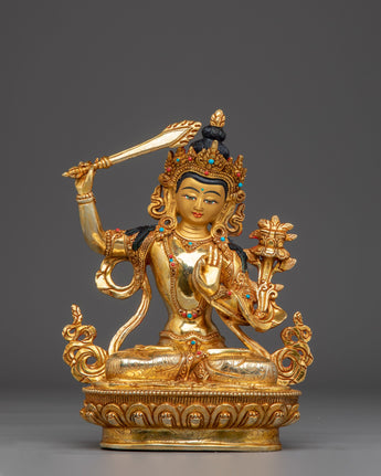 Manjushri Deity for Wisdom & Meditation | Gold Gilded Tibetan Bodhisattva