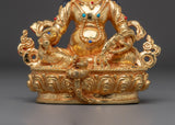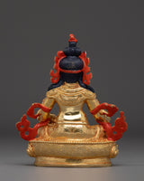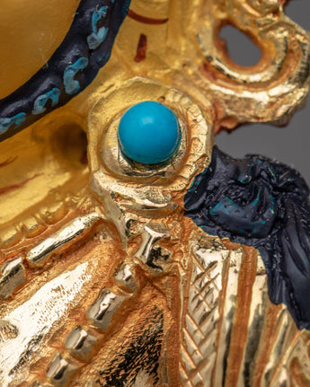 This Buddhist Dzambhala Handcrafted Statue, representing the mighty wealth symbol, stands at 5.7”/14.5cm in height and 5.1”/13cm at the base, weighing 0.64 kg. Made from copper and richly gilded in 24K gold, the statue is further adorned with gold and acrylic paintings, as well as inlaid gemstones. Crafted by skilled Nepali artisans, Dzambhala is revered as the deity of prosperity and abundance. This compact yet radiant piece is ideal for home altars, workspaces, or spiritual areas dedicated to attracting wealth and well-being.