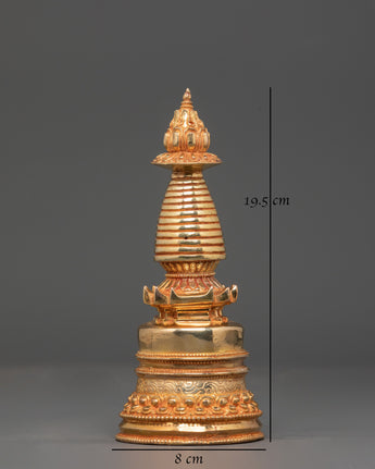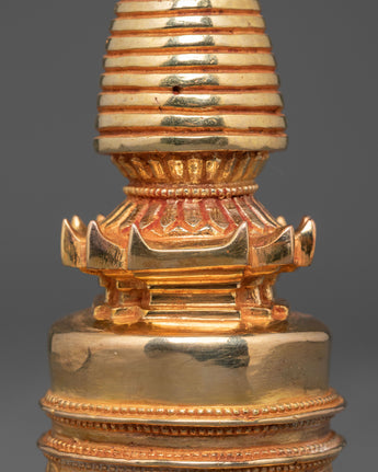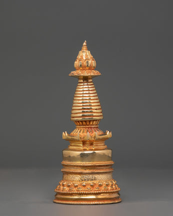 Copper Gold Plated Mini Stupa for Altar | Handmade Copper Buddhist Stupa
