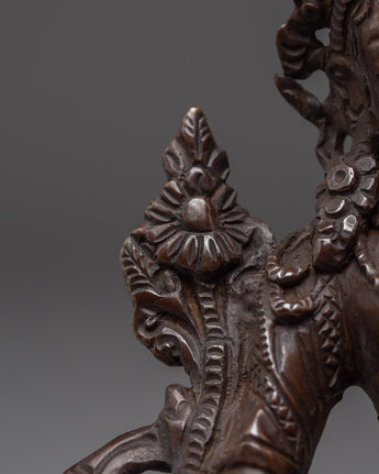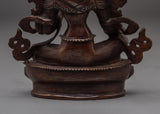 This handmade oxidized statue of Shyama Tara stands at 5.7”/14.5cm in height and 4.3”/11cm at the base, weighing 0.50 kg. Expertly crafted from oxidized copper by skilled Nepalese artisans, the statue represents Green Tara, the embodiment of swift compassion, healing, and protection. Ideal for personal altars, meditation spaces, or spiritual decor, this piece brings a calming and supportive presence to any sacred setting.