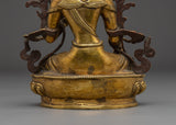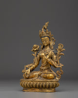 Handmade Peaceful Golden White Tara Statue in Copper for Dharma Decor