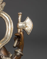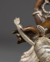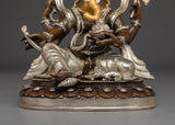 The Prosperity God Ganesh Statue measures 7.7” (19.5 cm) in height, with a 6.3” (16 cm) base, and weighs 2 kg. Crafted from oxidized copper with a silver-plated finish, it is adorned with intricate gold and acrylic paintings that bring out the divine features of the elephant-headed deity. Ganesh, revered as the remover of obstacles and the god of wisdom and prosperity, symbolizes success and new beginnings. This finely crafted statue is a perfect addition to any home or office altar, inviting blessings of intellect, protection, and abundance.