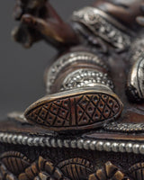 The Lotus Born Master Padmasambhava Statue, also known as Padmasambhava, the founder of Tibetan Buddhism, represents enlightenment, compassion, and spiritual mastery. This handcrafted statue is 8.7" (Height) x 5.9" (Base) and weighs 1.35 kg. It is made of oxidized copper. Created by expert Nepalese artisans, it represents Himalayan Buddhism's holy traditions, making it an appealing addition to altars, meditation places, or sacred collections.