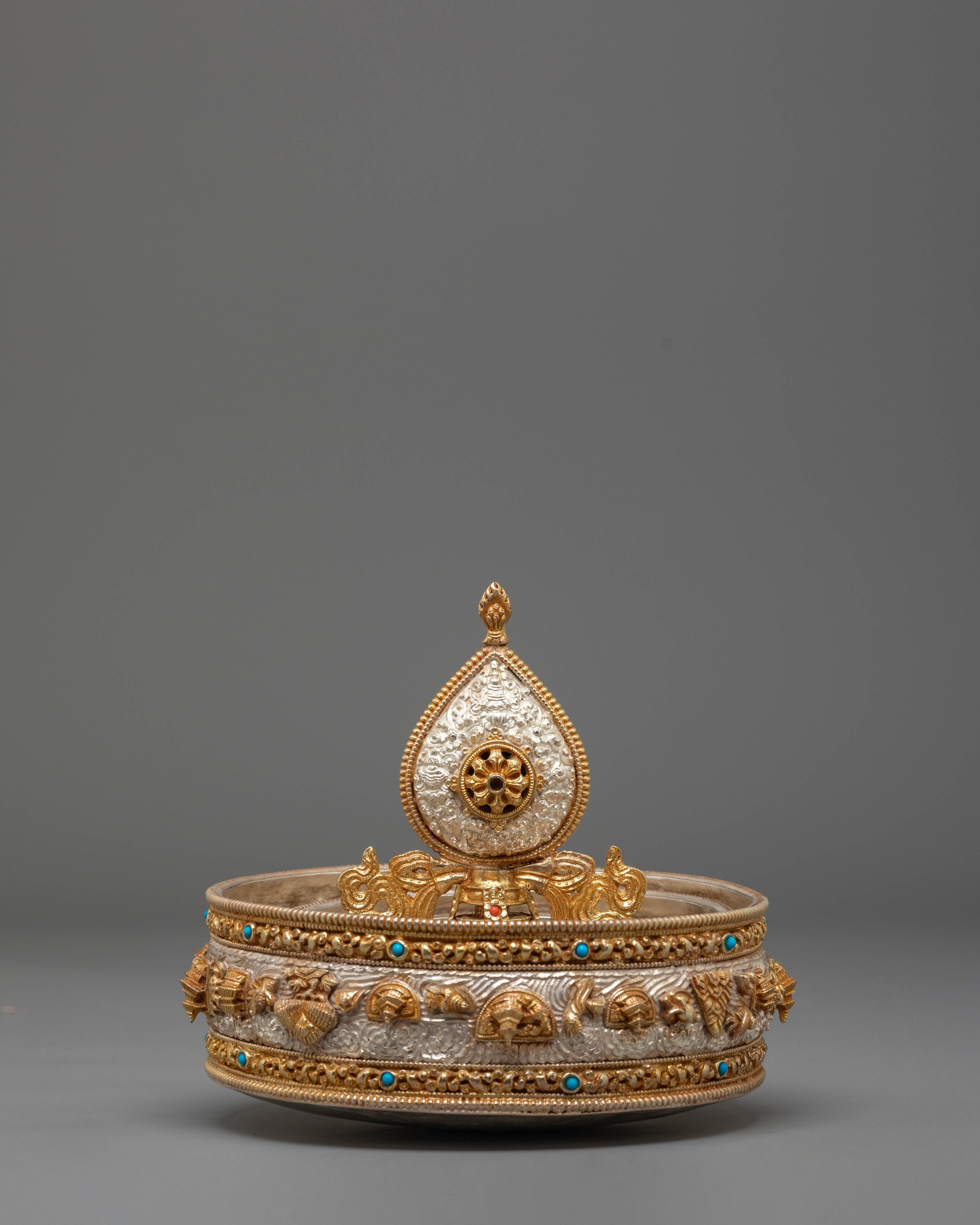 A rice bowl represents prosperity, sustenance, fertility, and abundance. Thus, a Rice Bowl is reputed to assist you in warding off any evils to the household and, at the same time, aid you in achieving prosperity in wealth and happiness in your family life. Mostly seen on the Buddha's hands, Buddhist monks traditionally used rice bowls to accept offerings from people.