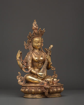 Saraswati Goddess Statue in Copper | Wisdom Deity Sculpture