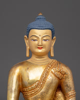 The Serene Amitabha Buddha Sculpture is a remarkable representation of the Buddha of Infinite Light, standing 26.5cm tall and 20.5cm wide, with a weight of 2.41kg that conveys its substantial presence. Expertly handcrafted from copper and finished with a electro gold plating, this statue captures the profound compassion, wisdom, and spiritual guidance that Amitabha Buddha embodies. The serene expression and meditative posture evoke an immediate sense of peace, mindfulness, and clarity, transforming any meditation space, altar, or sacred area into a sanctuary of calm and devotion. Every detail, from the intricate folds of the flowing robes to the finely sculpted facial features and meaningful hand gestures, showcases meticulous craftsmanship that brings the figure to life. The electro gold plating not only enhances the sculpture’s divine aura but also reflects light, amplifying Amitabha’s spiritual presence and creating a luminous focal point in your sacred setting.