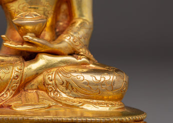 Shakyamuni Siddhartha Gautama was Buddha's original name. Only when he became the Buddha was he given the name Shakyamuni. Buddha means "awakened one" in Sanskrit. In his left hand, he carries an alms bowl filled with three priceless nectars, signifying his victory over the three demons of uncontrollable death, polluted aggregates, and delusion.