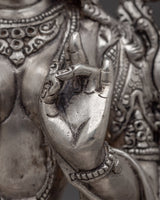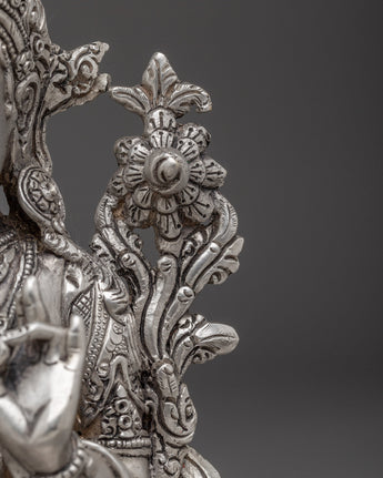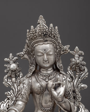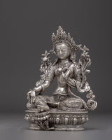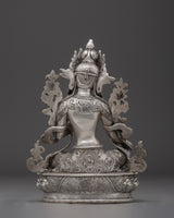 Himalayan Silver Green Tara Statue | Buddhist Spiritual Decoration