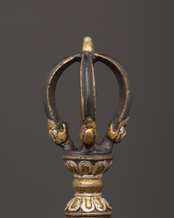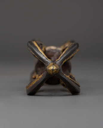This Vajra is ideal for spiritual rituals, meditation sessions, or as an altar centerpiece. It is a sacred object and an amazing relic. The piece is perfect for Vajrayana Buddhists, collectors of Tibetan ritual objects, or anybody looking for a one-of-a-kind, symbolic addition to their holy space. It is a valuable gift for spiritual seekers and represents the essence of knowledge and compassion.