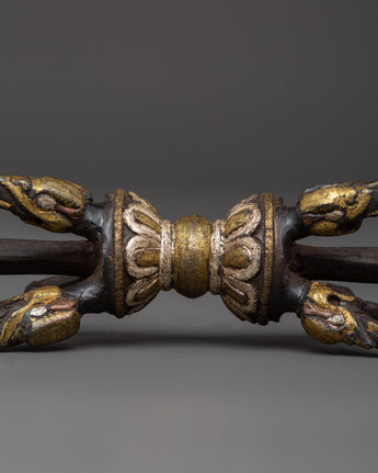 Silver Inlaid Tibetan Vajra | Handcrafted Ritual Scepter for Meditation