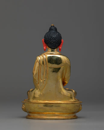 Experience the calming energy of our "Small Amitabha Buddha" statue, a sublime depiction of endless light and life. This statue, which is 5.7 inches tall, is made of copper and is finely gilded with 24K gold, perfectly capturing Amitabha Buddha's tranquil and inviting position. The added gold and acrylic paintings enhance the statue's excellent detail, highlighting Amitabha's sympathetic expression and the graceful drape of his robes.