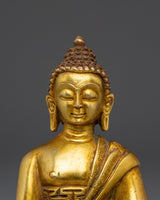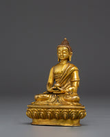 Spiritual Art of Amitabha Buddha measures 4.7”/12cm in height and 3.7”/9.5cm at its base, with a weight of 0.51 kg. Crafted from copper, the statue is beautifully adorned with 24K gold gilding, reflecting skilled artistry and devotion. The antique finish adds a timeless touch, inviting you to bring a piece of spiritual heritage into your space.