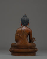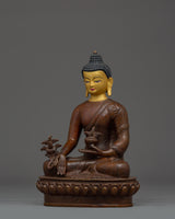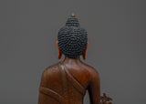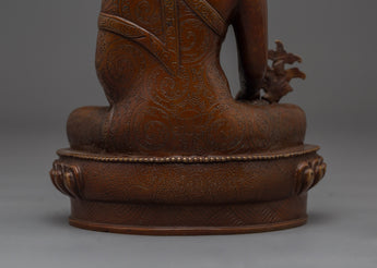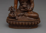 Spiritual Healing Deity Medicine Buddha stands 8.9” (22.5 cm) tall with a base width of 6.1” (15.5 cm) and weighs 1.55 kg. Crafted from an oxidized copper body, it features finely detailed gold and acrylic paintings that highlight its serene and healing presence. Known as Bhaisajyaguru, the Medicine Buddha represents the healing aspect of the Buddha’s wisdom and is revered for bringing physical and spiritual wellness. This statue is a powerful symbol for those seeking health, balance, and inner peace, making it a meaningful addition to meditation spaces or healing altars.
