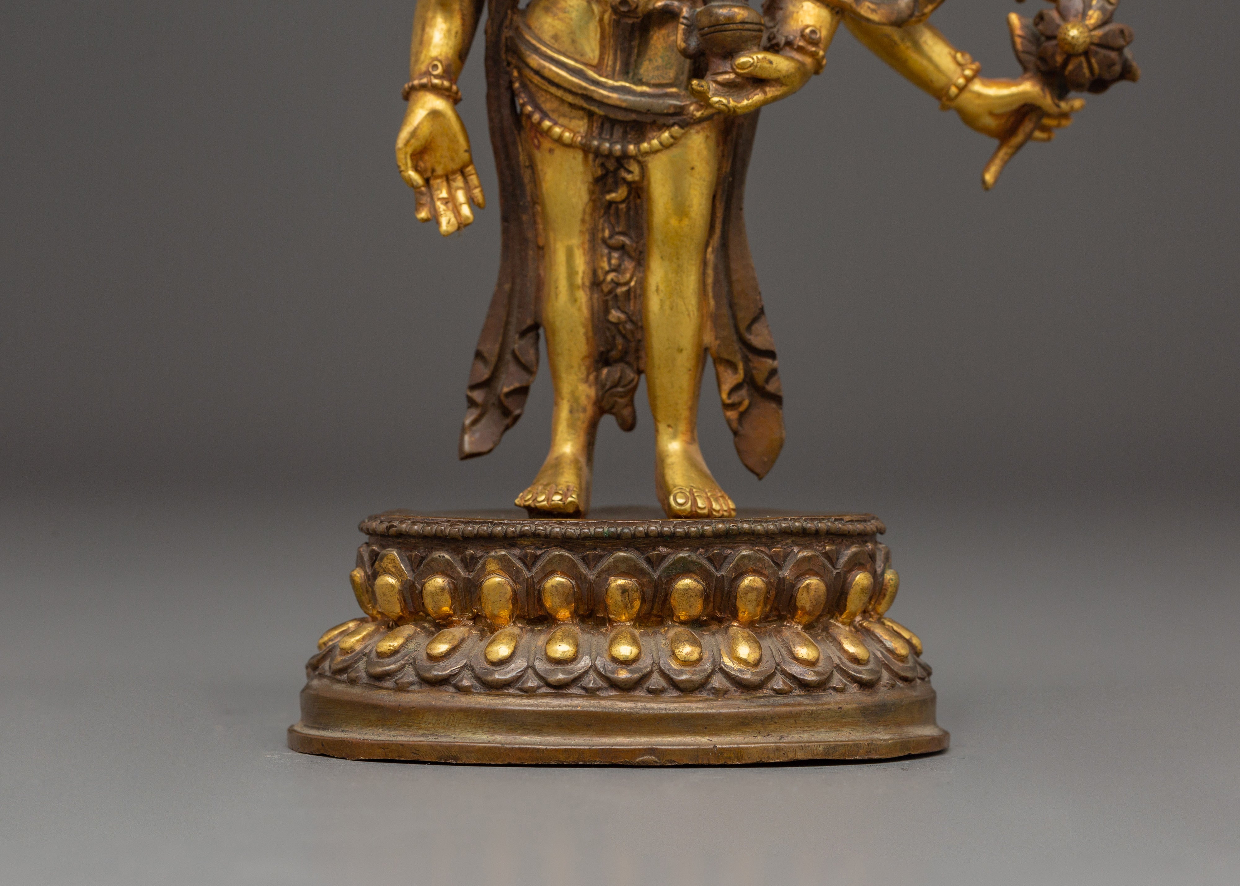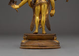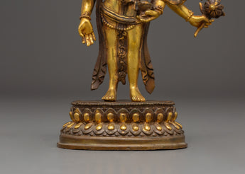Spiritual Statue of Bodhisattva Lokeshwor | Copper and Gold Gilded Sculpture