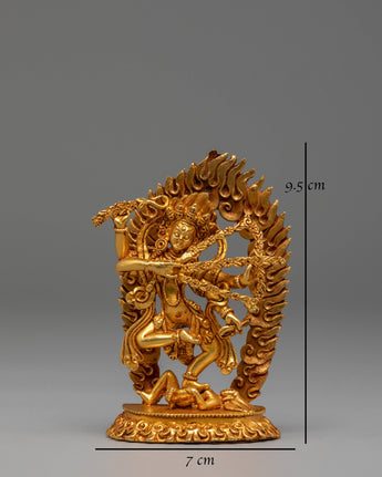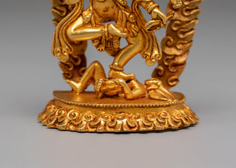 This Kurukulla Statue is a magnificently crafted portrayal of the powerful Tibetan goddess, constructed of copper with gold plating to enhance its spiritual significance and artistic appeal. It measures 9.5cm in height and 7cm in breadth and weighs 0.16kg, making it a compact yet impactful addition to any altar or meditation space. The major keyword "Statue of Kurukulla" ensures improved SEO and attracts customers looking for authentic Tibetan spiritual decor.
