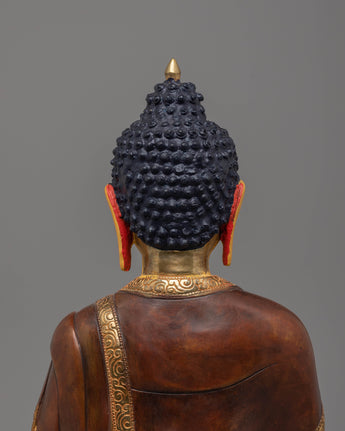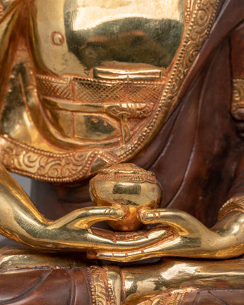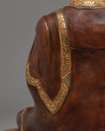 This 4.11 kg statue features a copper body gilded with gold-plated and embellished with bright acrylic color. These detailed features bring the statue to life, allowing it to exude peace and spiritual enlightenment, making it an excellent addition to any home, business, or sacred area.