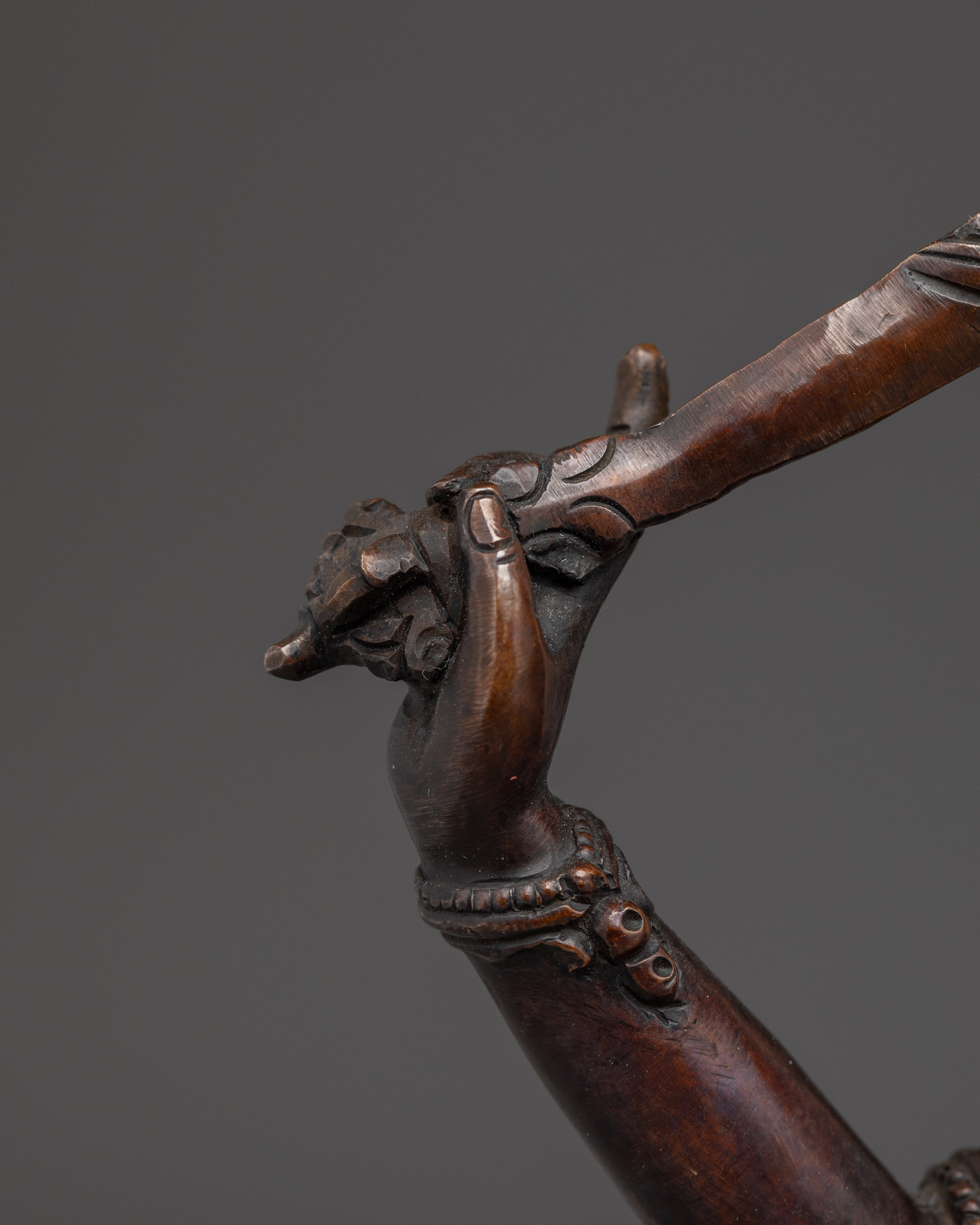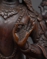 In Buddhist traditions, Manjushri, the Bodhisattva of Wisdom, is revered for his ability to cut through delusion and bring clarity. When paired with his consort, this portrayal highlights the union of transcendent wisdom (Manjushri) and profound comprehension (Consort). They work together to guide the seeker in understanding reality better, emphasizing the balance between knowledge and sensitivity. This statue serves as a beacon for anyone seeking a greater sense of themselves and the universe.