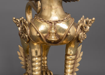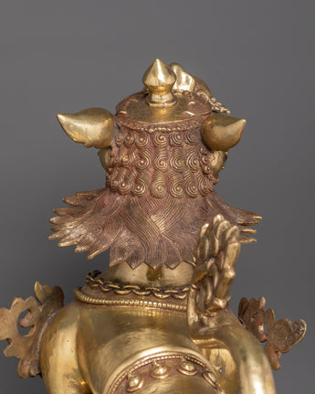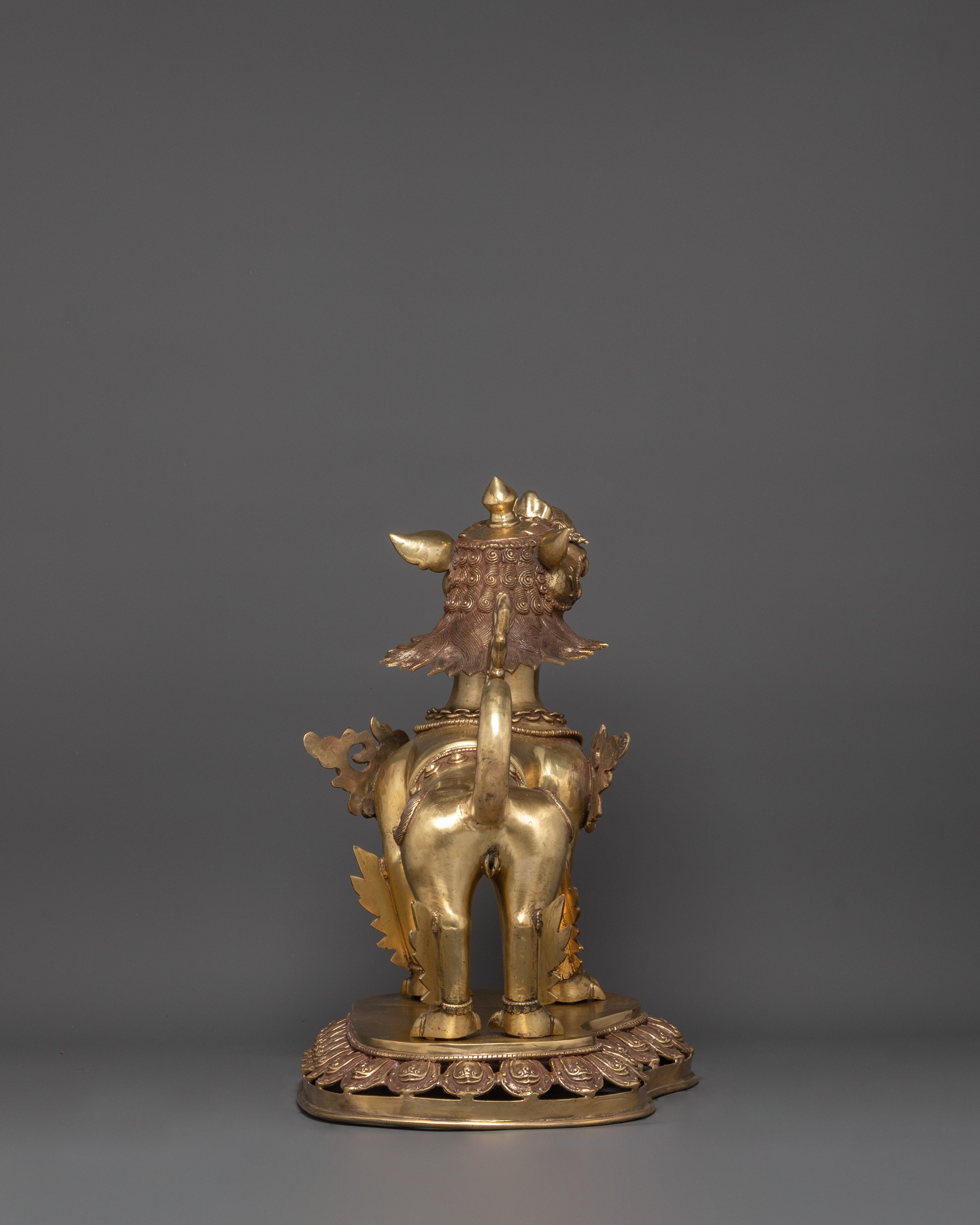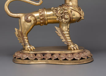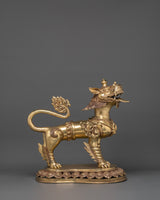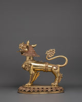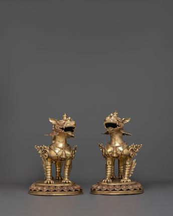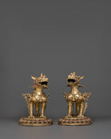 Sacred Tibetan Buddhist Guardian Lions Set | Brass Snow Lion Protector Statues