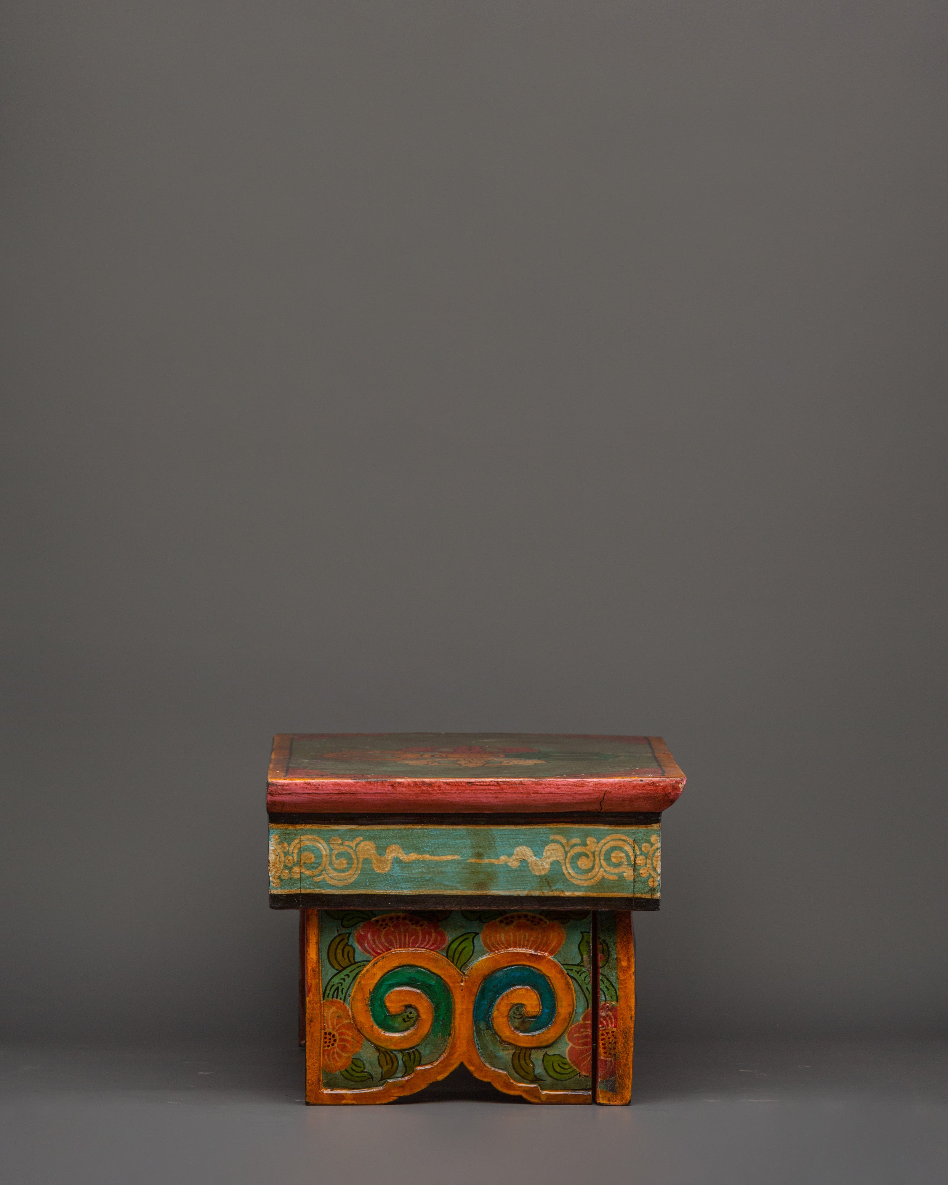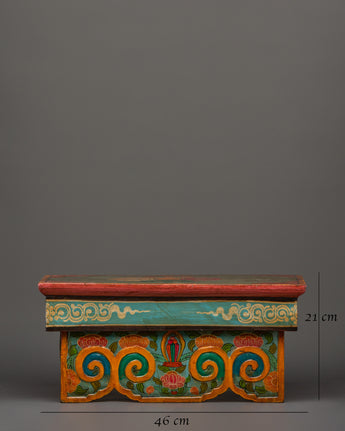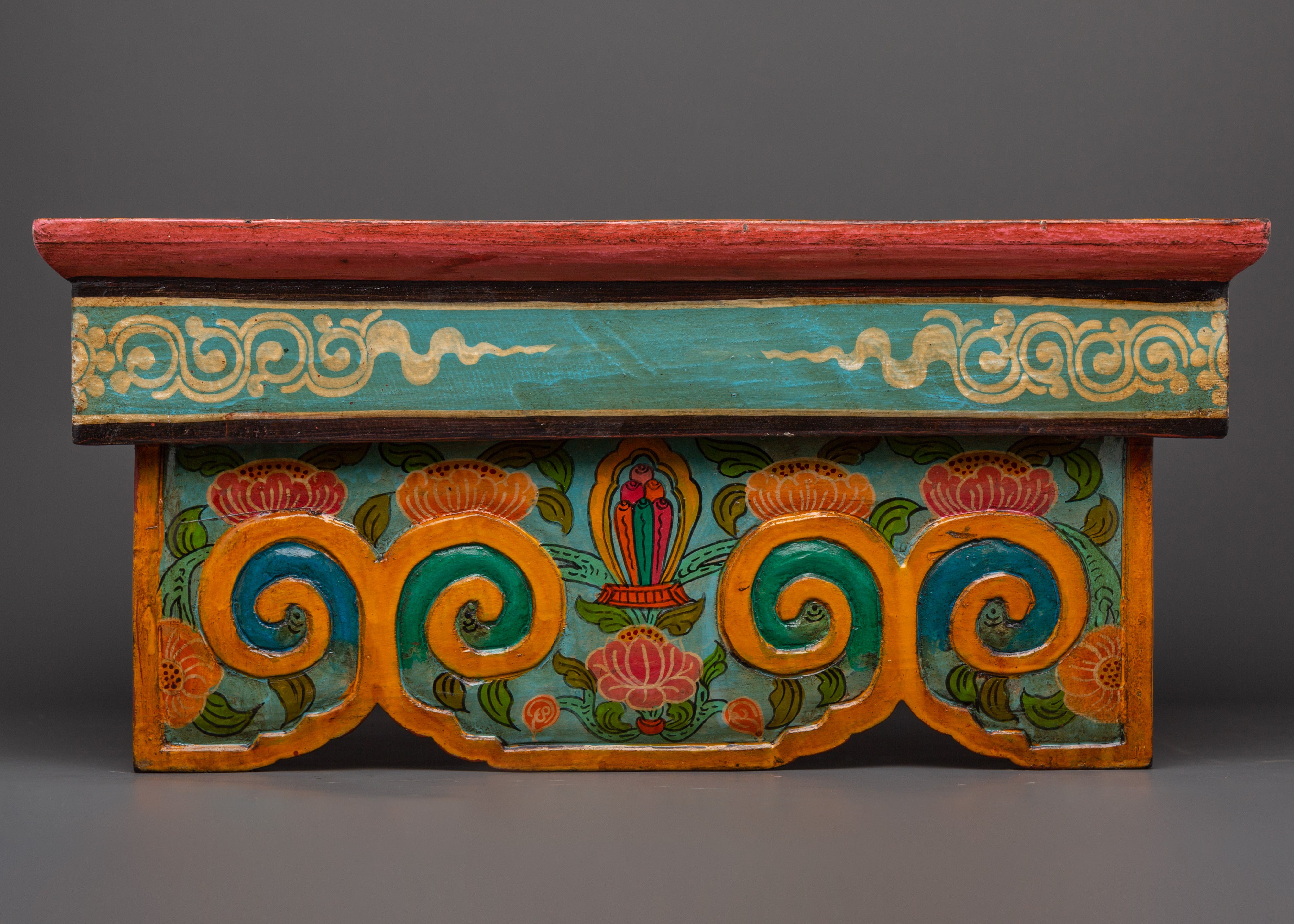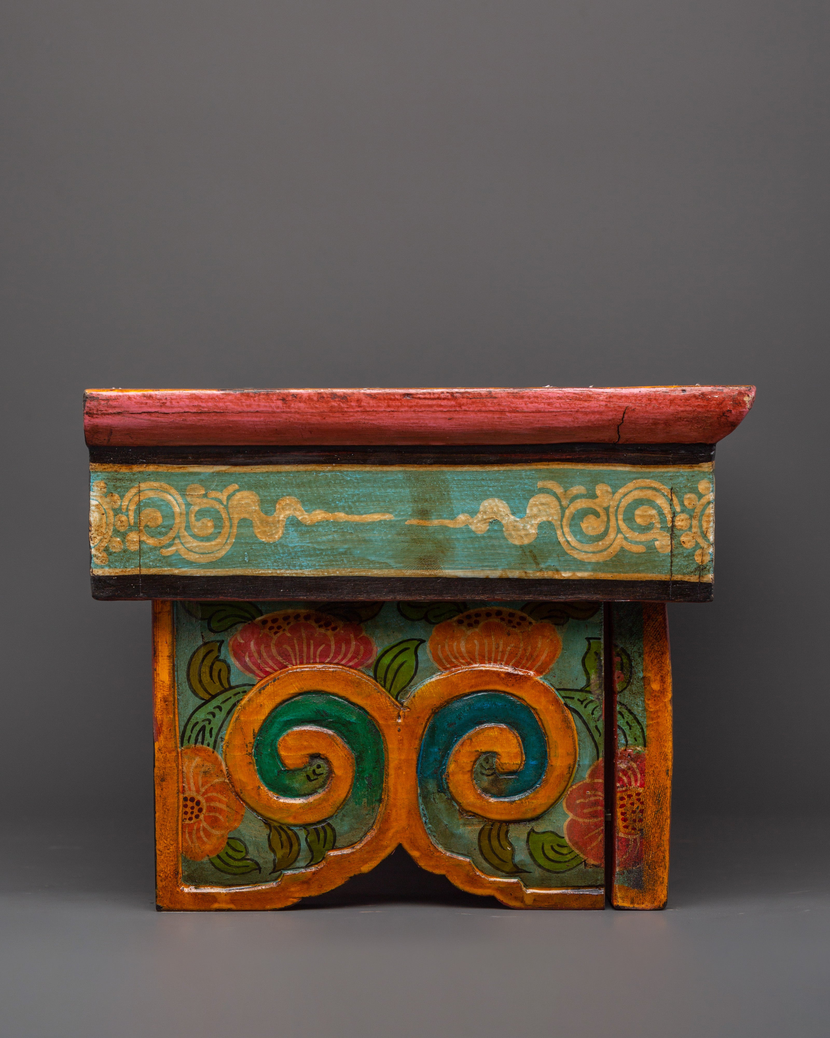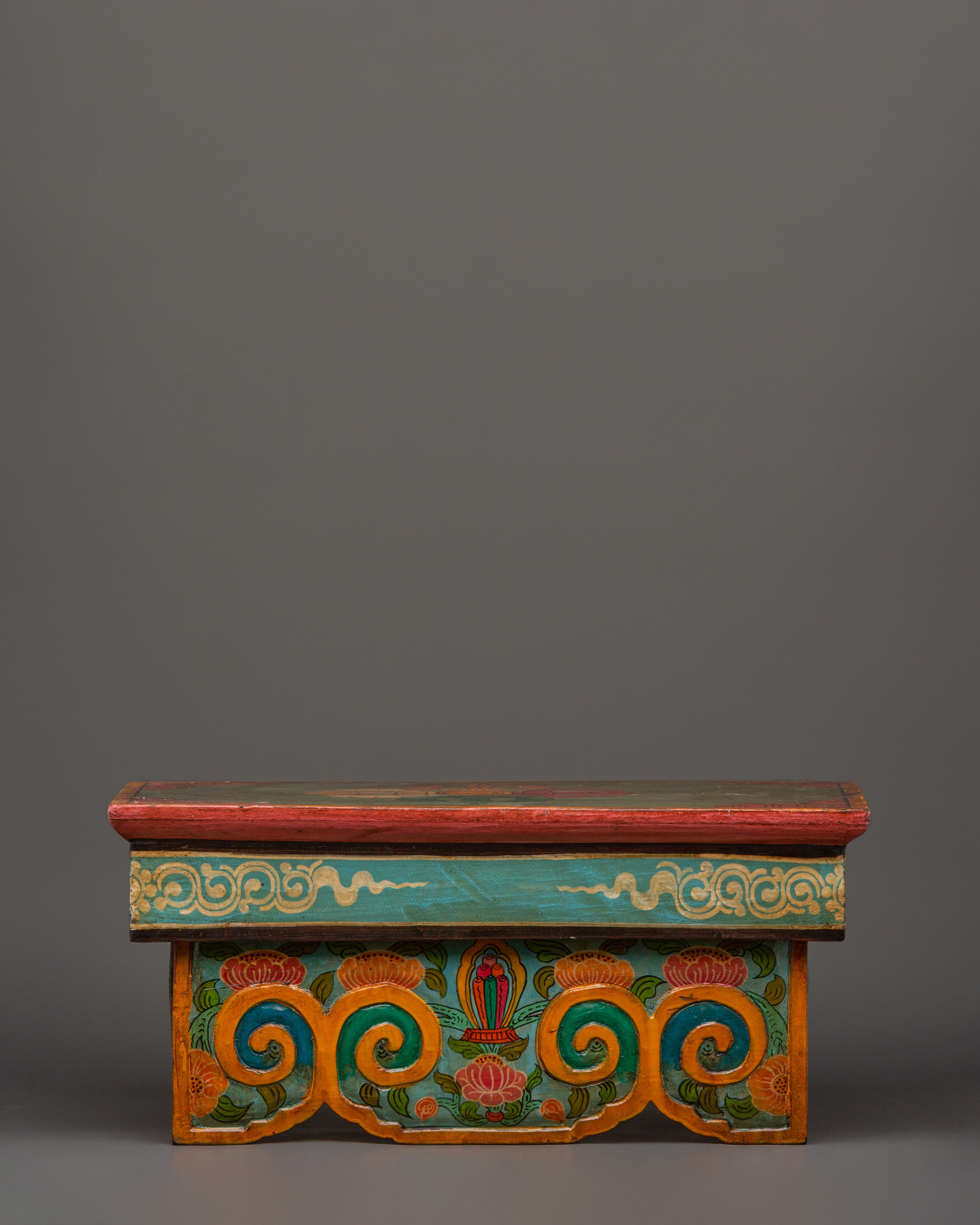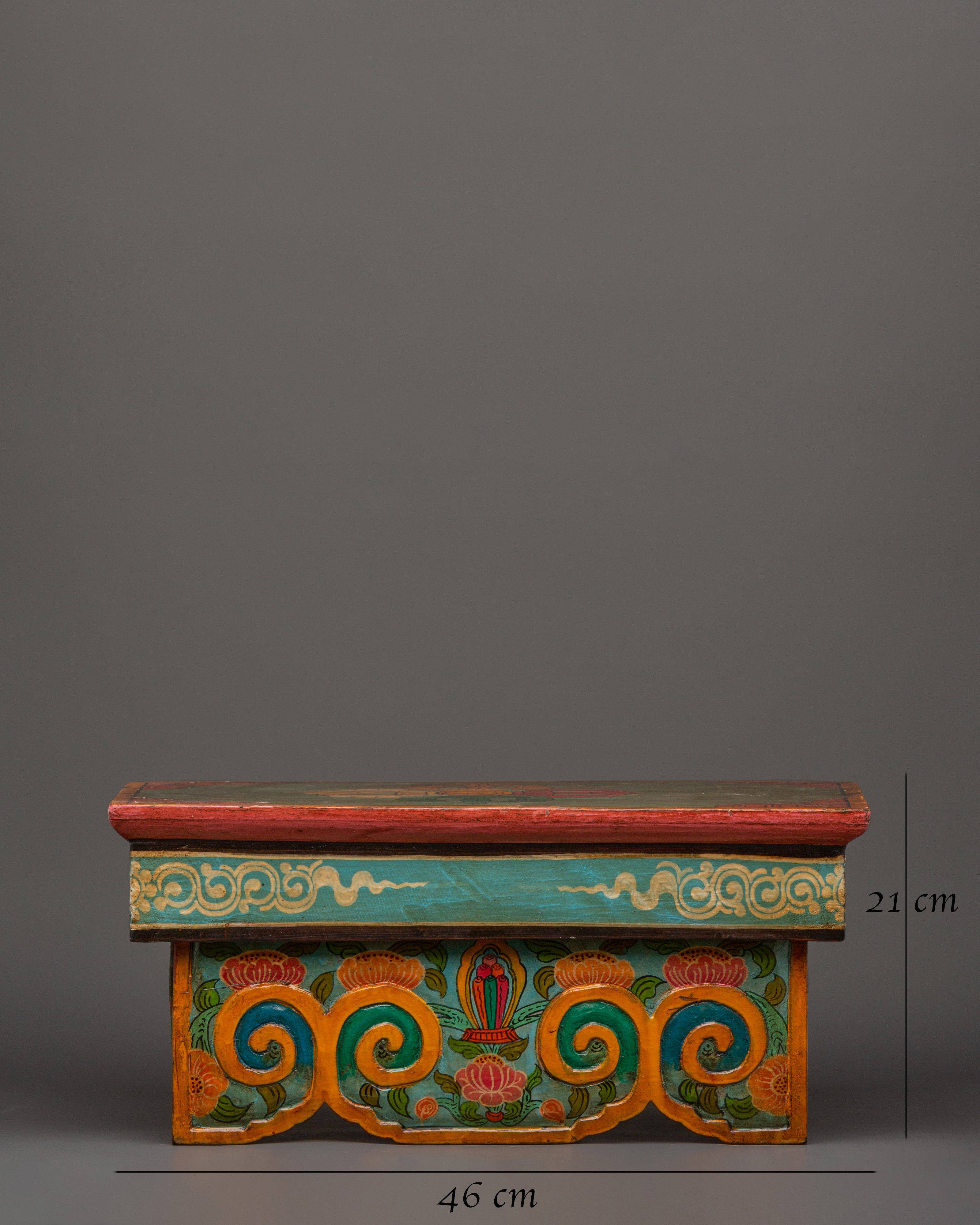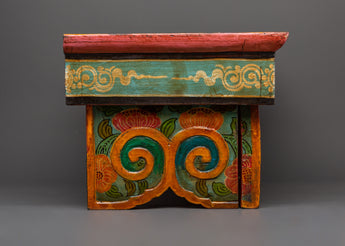 Each part of this table is shaped and painted by skilled artisans who follow Tibetan Buddhist motifs. The rich colors, symbolic patterns, and balanced structure reflect the reverence placed on ritual objects across Himalayan cultures. Whether you use it for statues, offering bowls, butter lamps, or incense, it elevates the atmosphere of your practice through both artistry and spiritual intent.