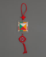 Measuring 7cm in height and 6cm in width, with a total hanging length of 29cm, and weighing 0.024kg, this amulet is lightweight and perfectly designed for hanging in homes, meditation rooms, offices, or vehicles. The intricate sacred imagery within the Vajrakilaya Butti reflects the depth of Tibetan Buddhist tradition, serving as a constant reminder of spiritual strength, protection, and inner transformation. Its striking red thread and symbolic design make it both a spiritual talisman and a meaningful decorative charm.