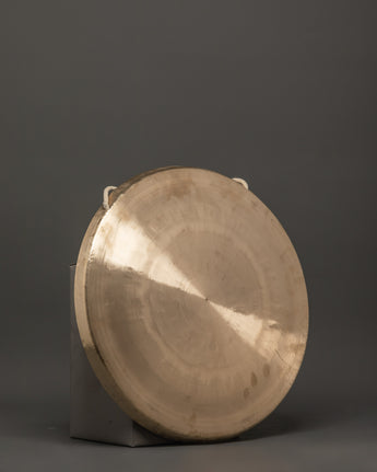Immerse yourself in this Traditional Gong's rich, resonating tones, meticulously made to enhance your meditation, yoga, and sound healing practices. With a 45.5cm diameter and a stunningly reflecting brass finish, this sacred instrument is intended to generate powerful, grounding vibrations that promote serenity, clarity, and attention. Its echoing sound can cleanse places and calm the soul, whether employed in a communal ceremony or a solo spiritual practice.