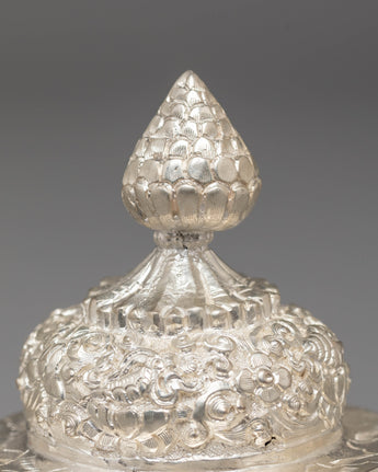 Traditional Rice Offering Pot for Puja and Ceremonies | Silver Plated Ritual Vessel