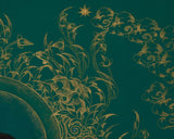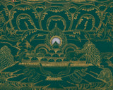 In this thangka, he is shown in the vajra stance, exuding a calm elegance. While his left hand holds a begging bowl, representing renunciation and spiritual detachment, his right hand makes the earth-touching mudra, signifying the moment of his enlightenment. The Thangka, a Buddhist artwork, features a magnificent background of gold and green that contrasts perfectly with the tranquil presence of the Buddha. The piece's vibrancy is increased by the gold accents that draw attention to the intricate designs. While shimmering gold represents wisdom and purity, green represents growth and harmony. The Traditional Shakyamuni Buddha Artwork is more than just a visual delight; it is a spiritual aid and representation of the profound journey to awakening.