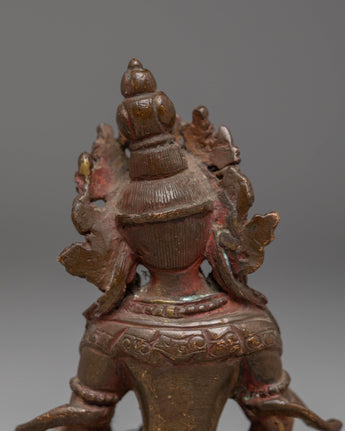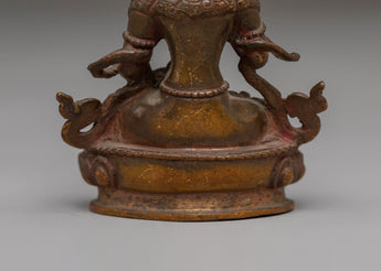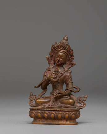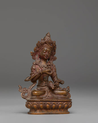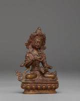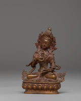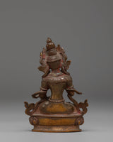 This Vajrasattva Statue for Purification is a finely crafted representation of the deity associated with cleansing negativity, renewing inner clarity, and restoring spiritual harmony. Made from oxidized copper, the statue carries a rich, antique finish that brings depth and expression to every contour. Vajrasattva is shown seated in a calm meditative posture, holding the vajra and bell—symbols of awakened wisdom and compassionate action.