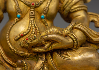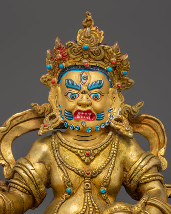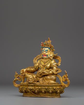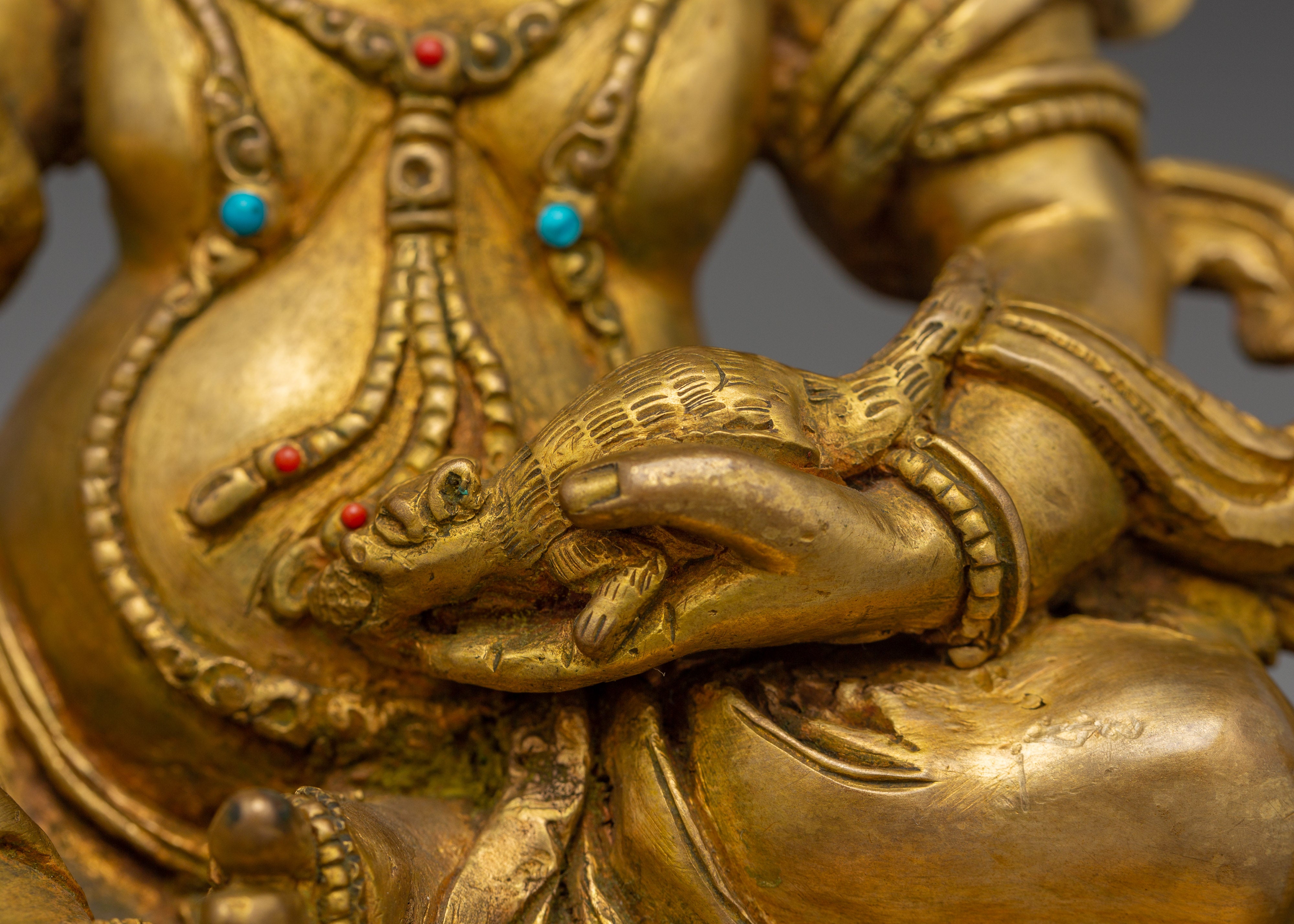 Wealth Icon Dzambhala Handmade Statue | Copper Body, Gold Gilded, Acrylic Color