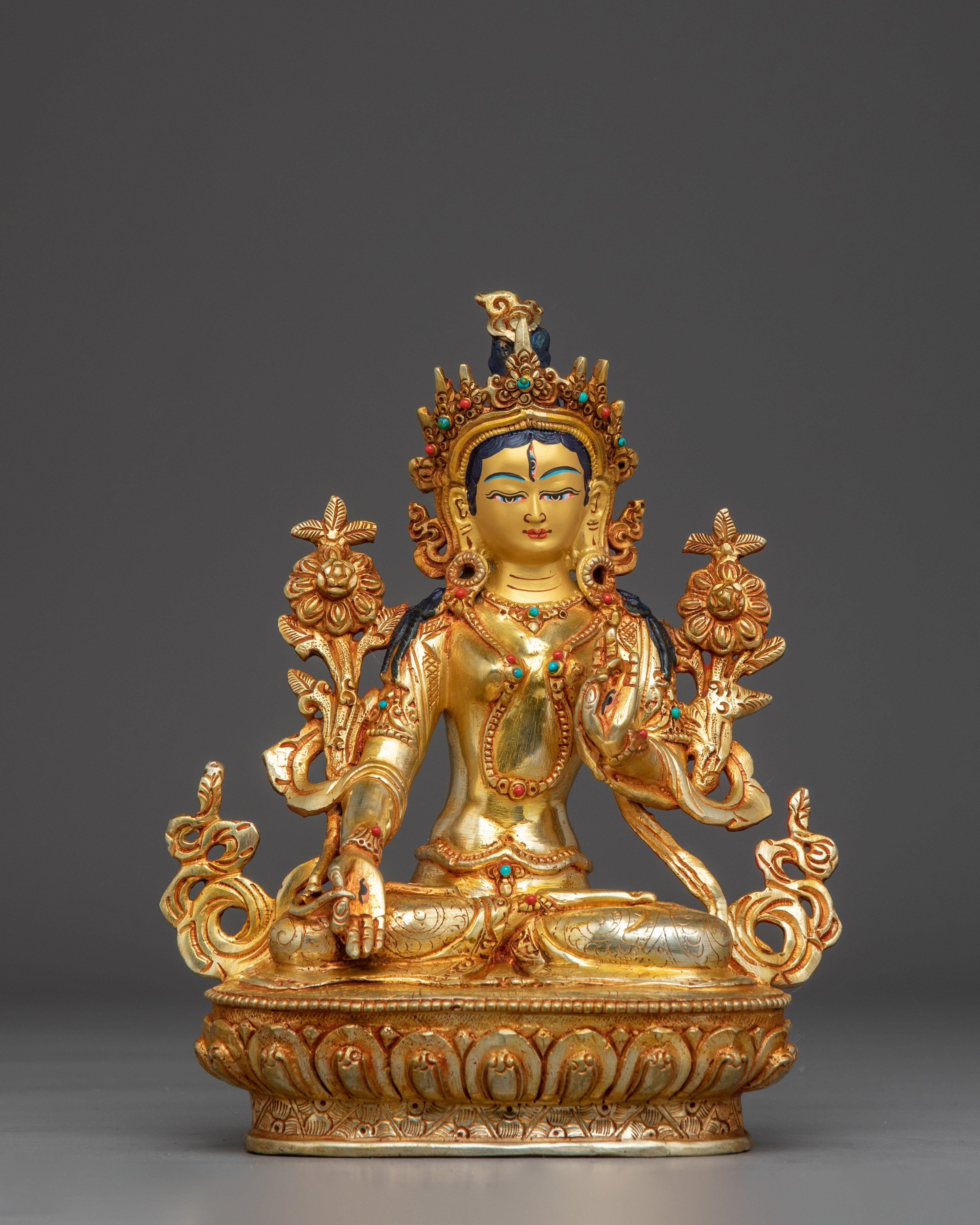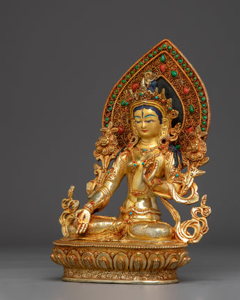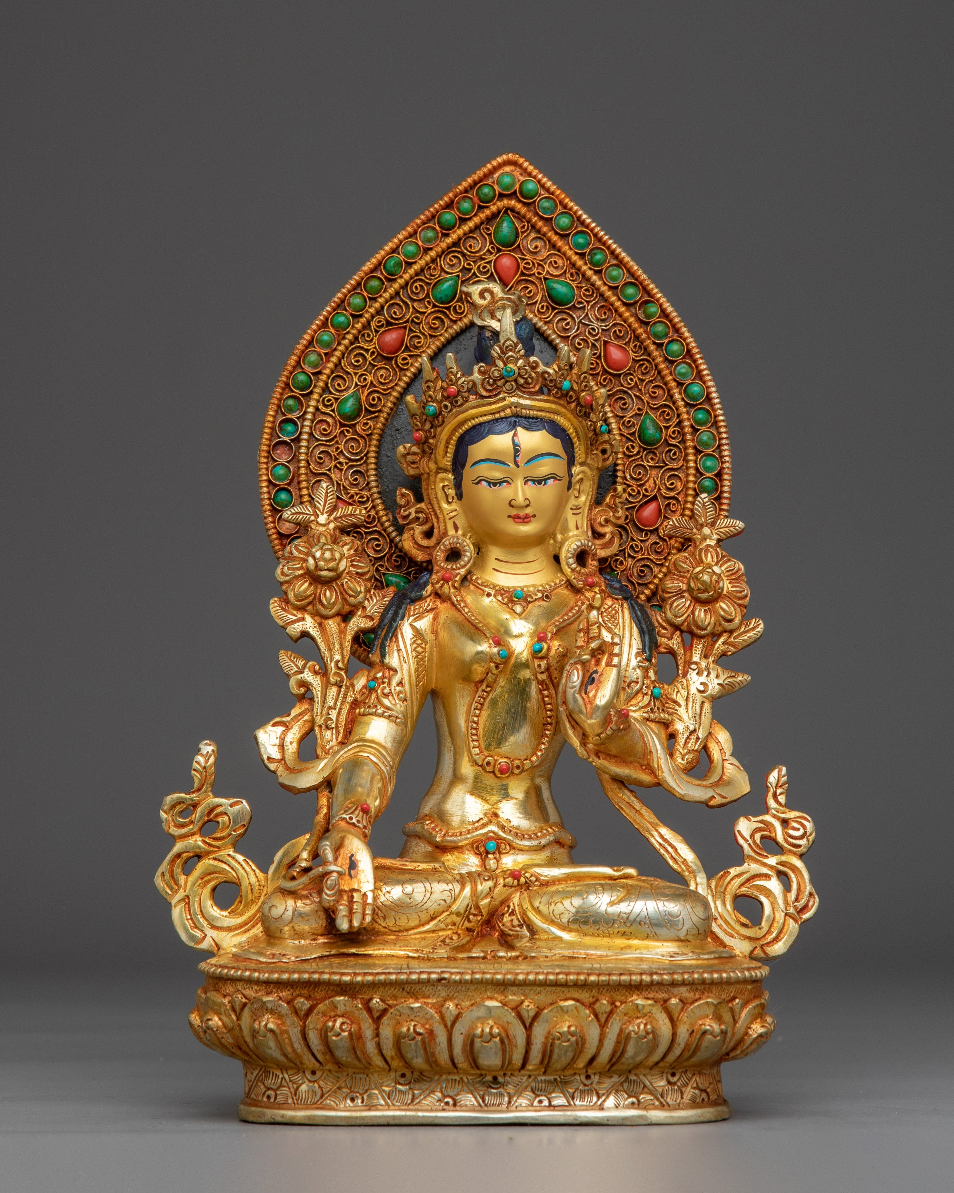 White Tara 24K Gold Gilded with Gemstones | Symbol of Healing and Compassion