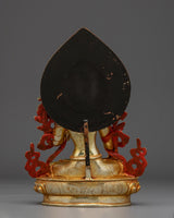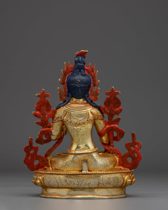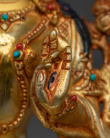 This handmade White Tara 24K Gold Gilded with Gemstones is a wonderful work of Tibetan art, showing the goddess of healing and longevity in exquisite detail. The statue is 9.8 inches tall and is masterfully gilded in 24K gold, with evident gemstones enhancing its spiritual essence. White Tara is revered as a symbol of boundless compassion and healing power, making her a significant figure among spiritual practitioners.
