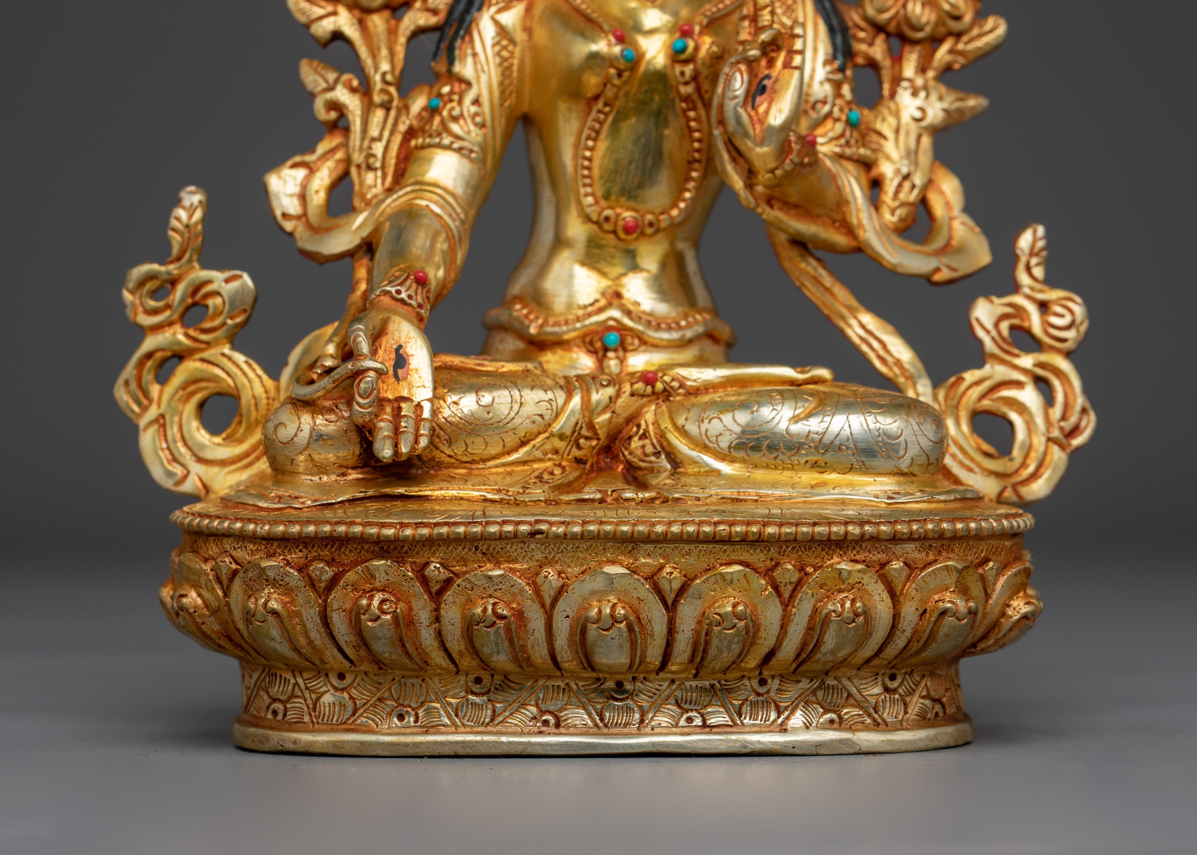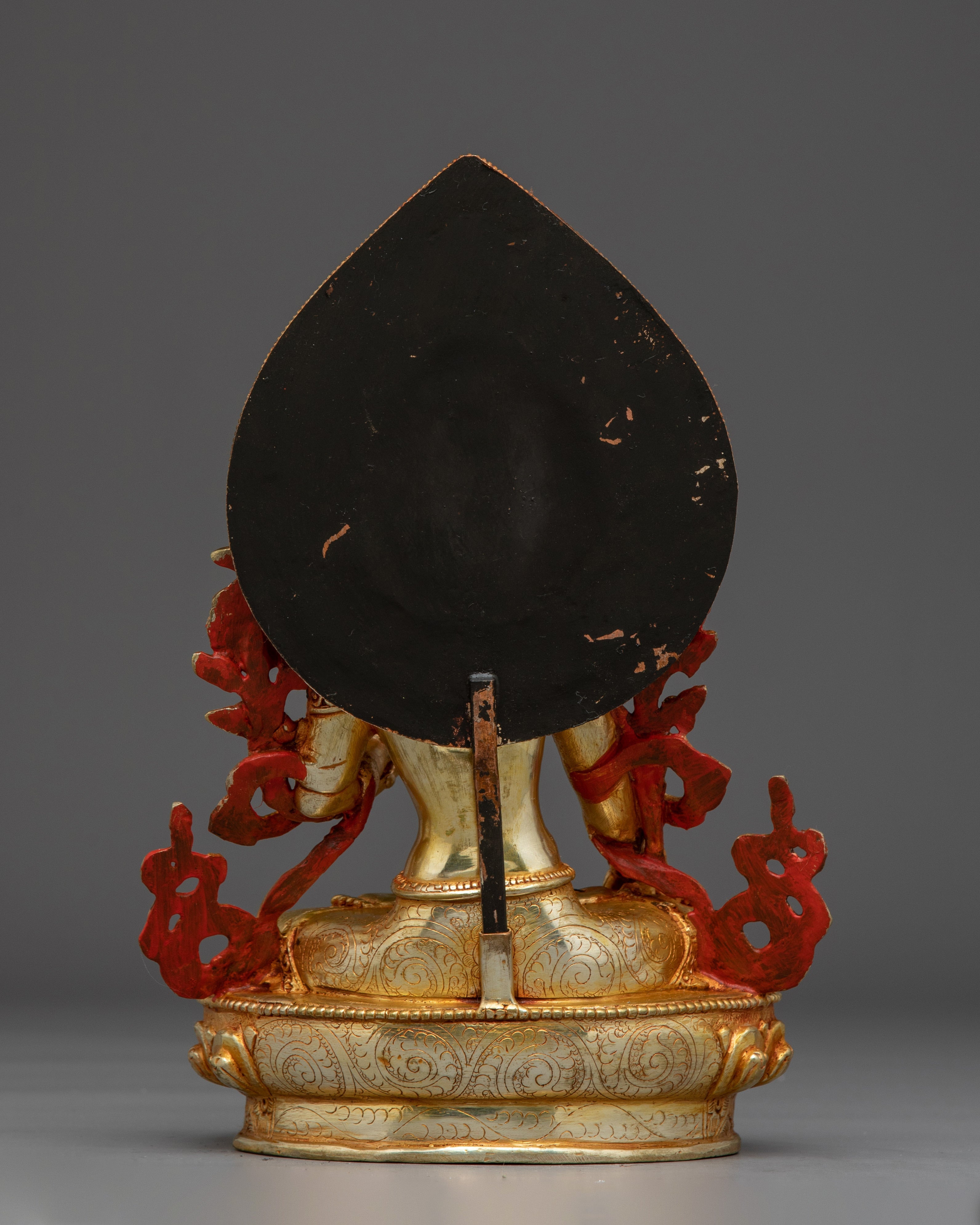 The statue's gold gilding and gemstone accents not only enhance its visual splendor, but also fill it with spiritual energy, making it ideal for promoting healing, serenity, and quiet in your meditation room. This statue is both a visual focus point and an effective spiritual tool for individuals seeking protection, healing, and compassion.