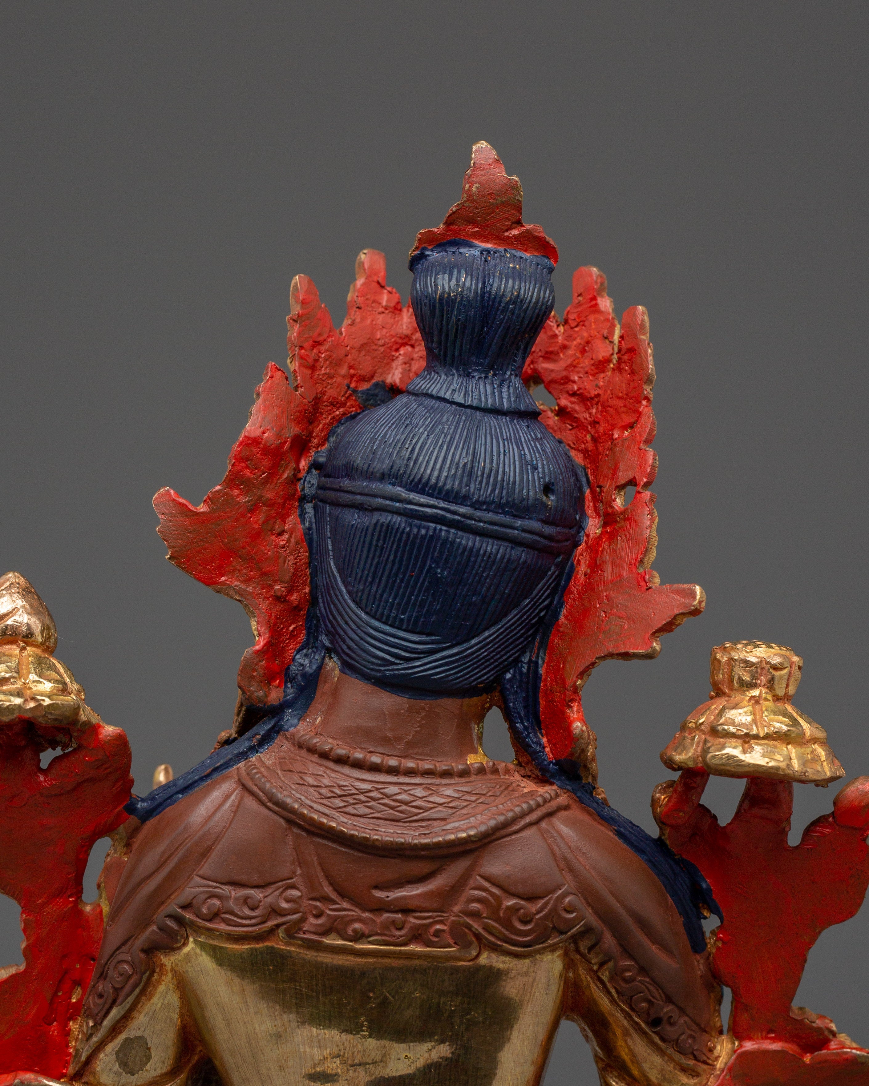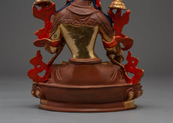 Tibetan Buddhism holds White Tara, the goddess of compassion and healing, in high regard for her capacity to bring forth healing, tranquility, and long life. Her serene attitude and the elegant placement of her hands represent her function in offering defense and soothing pain. This statue is a significant addition to any spiritual area or a considerate present for someone looking for peace and healing since it is a potent reminder of the compassion and healing energy that White Tara offers.